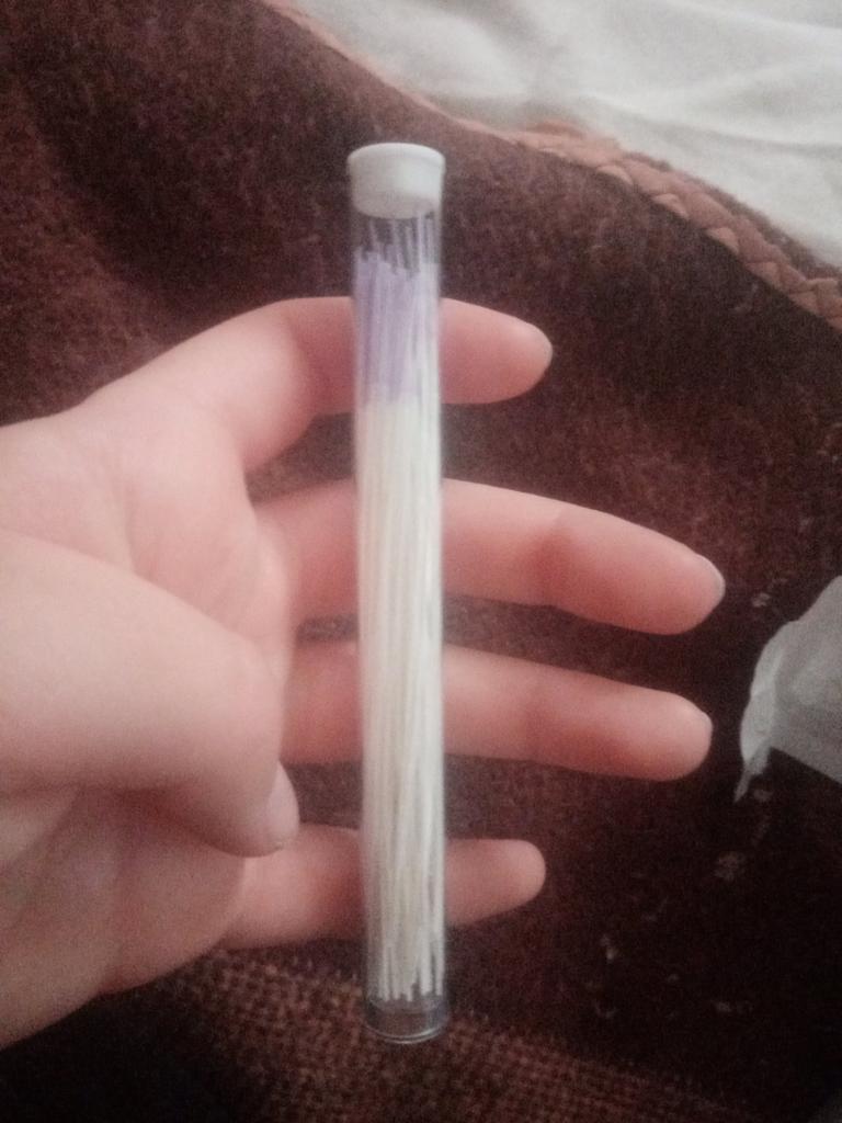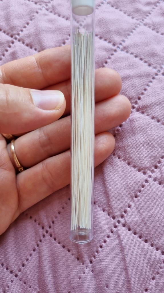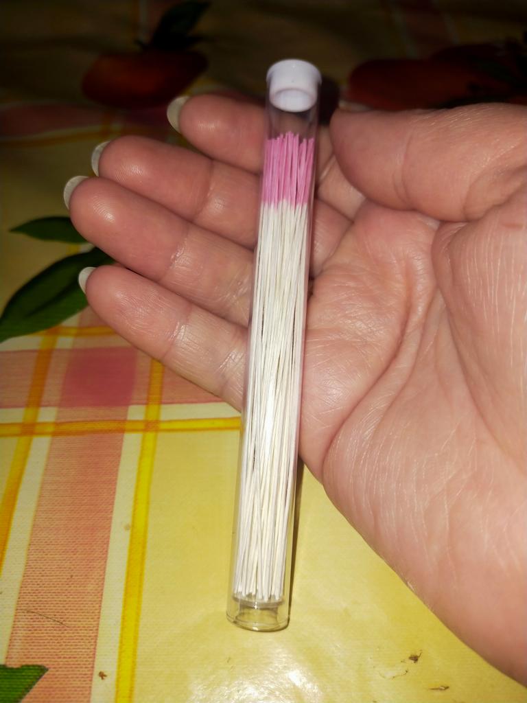 There are 61 pieces in a tube, thin sticks. I think it's pressed paper. It is easy to clean the ears. To be sure, I sprayed the stick with alcohol and cleaned it (where the earrings are inserted) for myself and my daughter. Very comfortable.