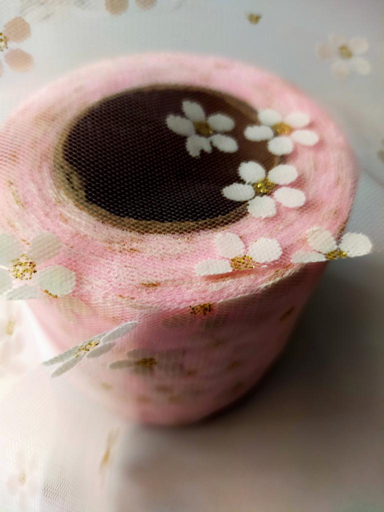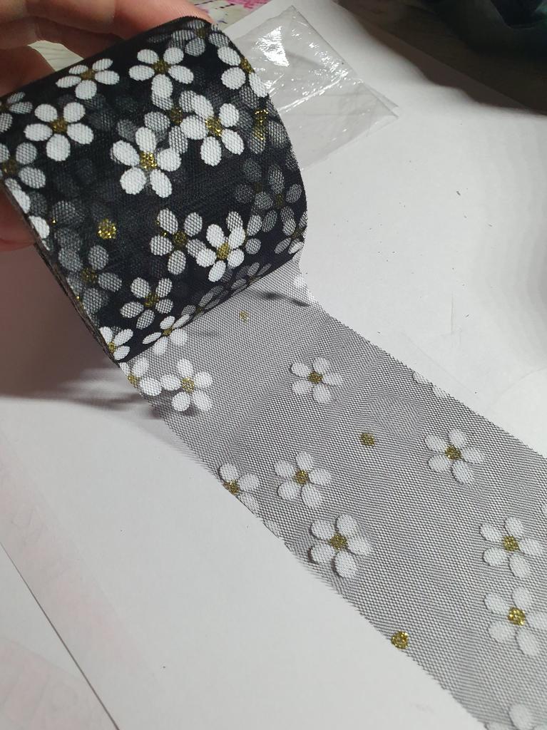 6cm 25Yards Floret Tulle Daisy Ribbon Roll DIY Handmade Craft Hair Ornament Mesh Fabric Sewing Supplies