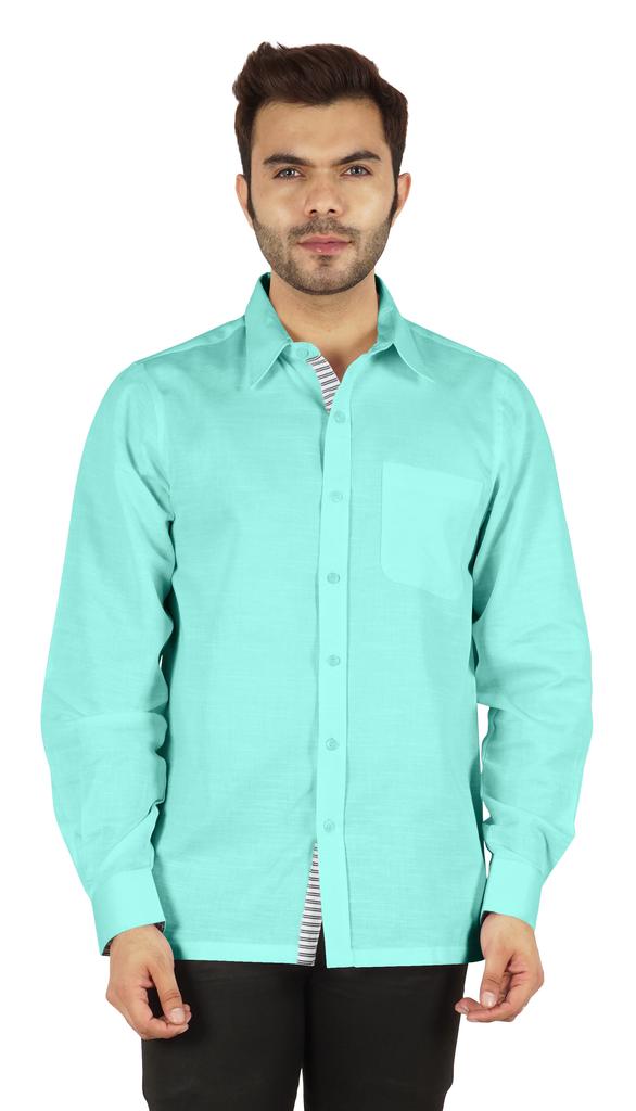* Features: comfortable fabric, solid color, shirt collar, button-down shirt, front placket, patch pocket, inner contrast formal shirt, full sleeves with cuff, straight hem.