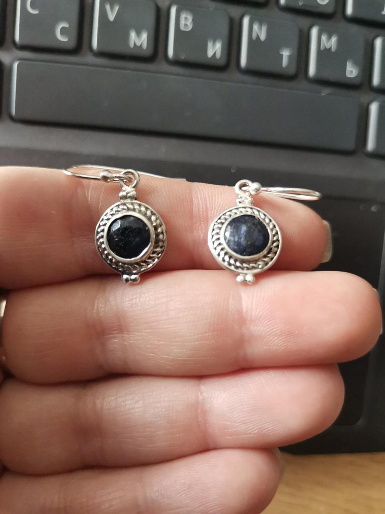 The stone has nothing to do with sapphire! Dark, almost black. The workmanship is nice, so I'm keeping the earrings, but actually I wanted blue stones.