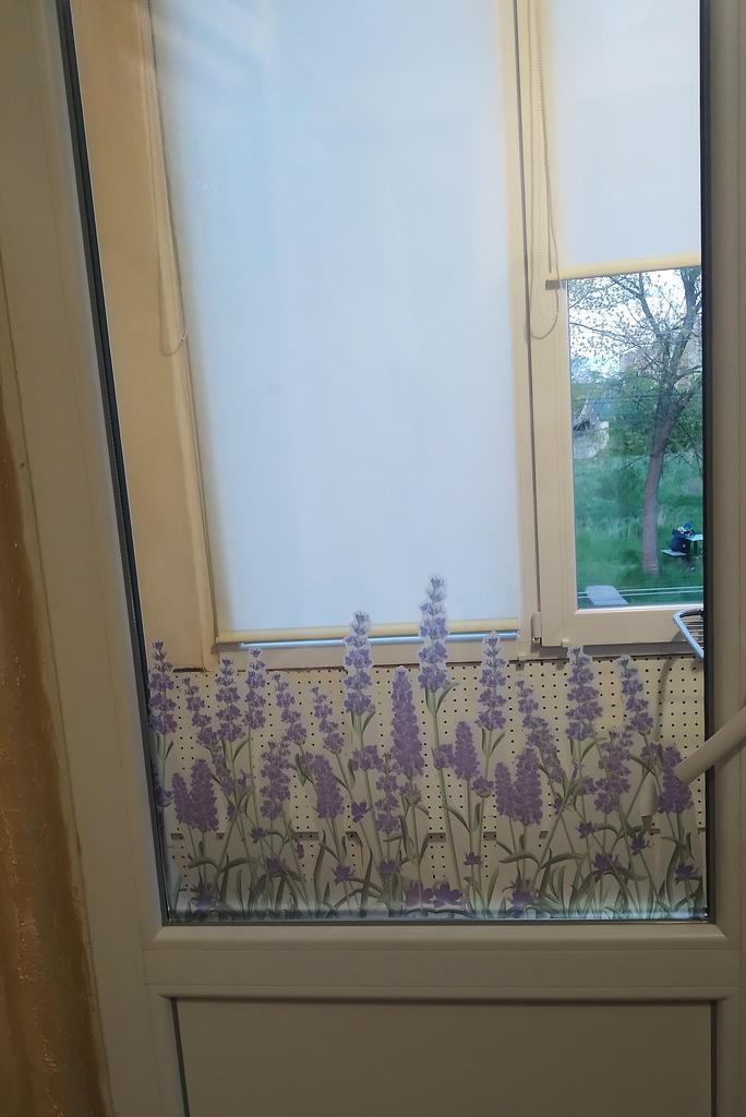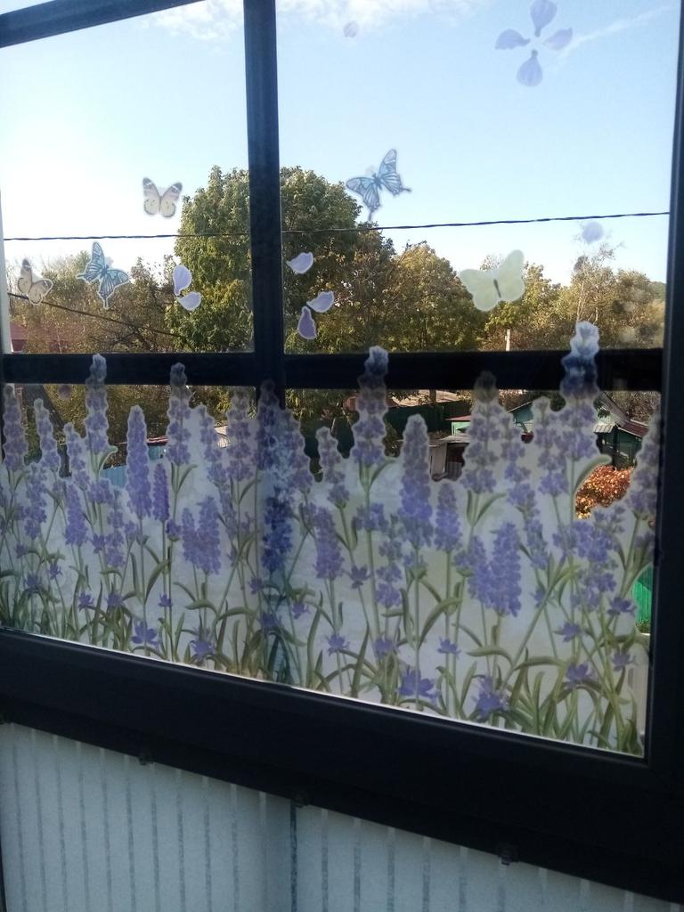 It does its job on the window. It closes it from prying eyes. The window became more cheerful. I glued a film with water so that I could correct the unevenness. But it is very difficult to do everything without blots. There are bubbles and stains.