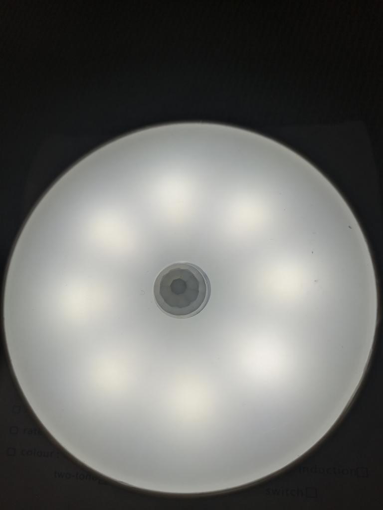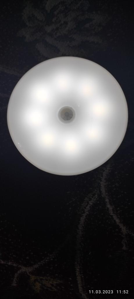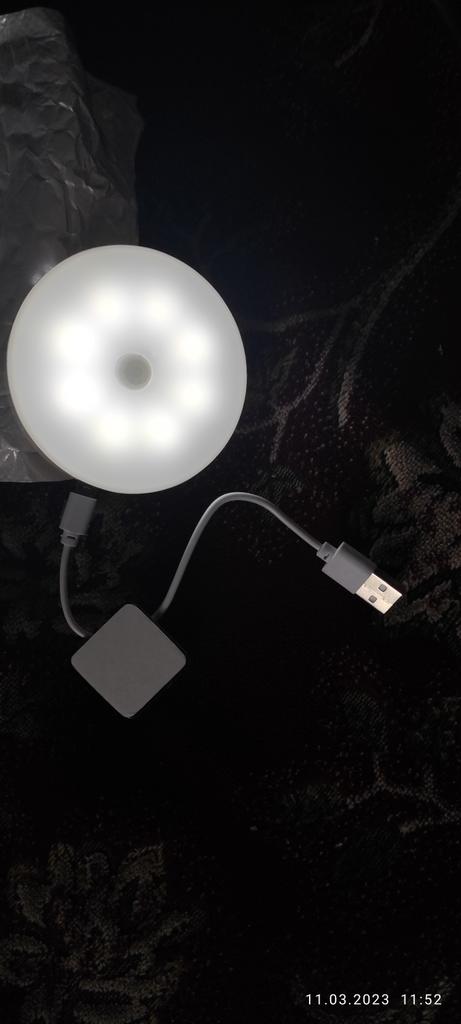 Very cool LED bright flashlight-lamp, responds well to movement, charges from charging (very convenient). Mounted on a magnet, you can easily remove and move to another place. I recommend .