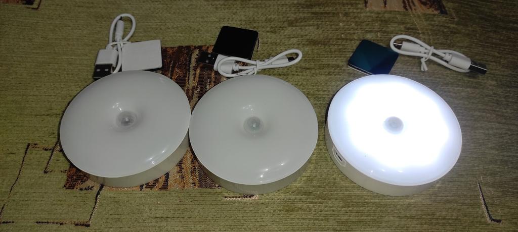 Very cool lamps, they work. One discharged on the way, the other was charged. They work on movement, in the absence of light - a great replacement. Not suitable for reading, of course, but for normal movement and seeing objects - light is more than enough. The light is yellow, does not strain the eyes. In small rooms (bath, toilet) you can not turn on the light at all. Charges from USB, charged already - everything works. In the set of fasteners, charging wire. I recommend!