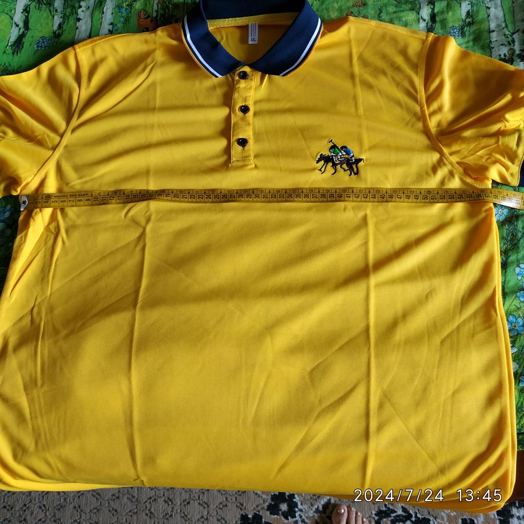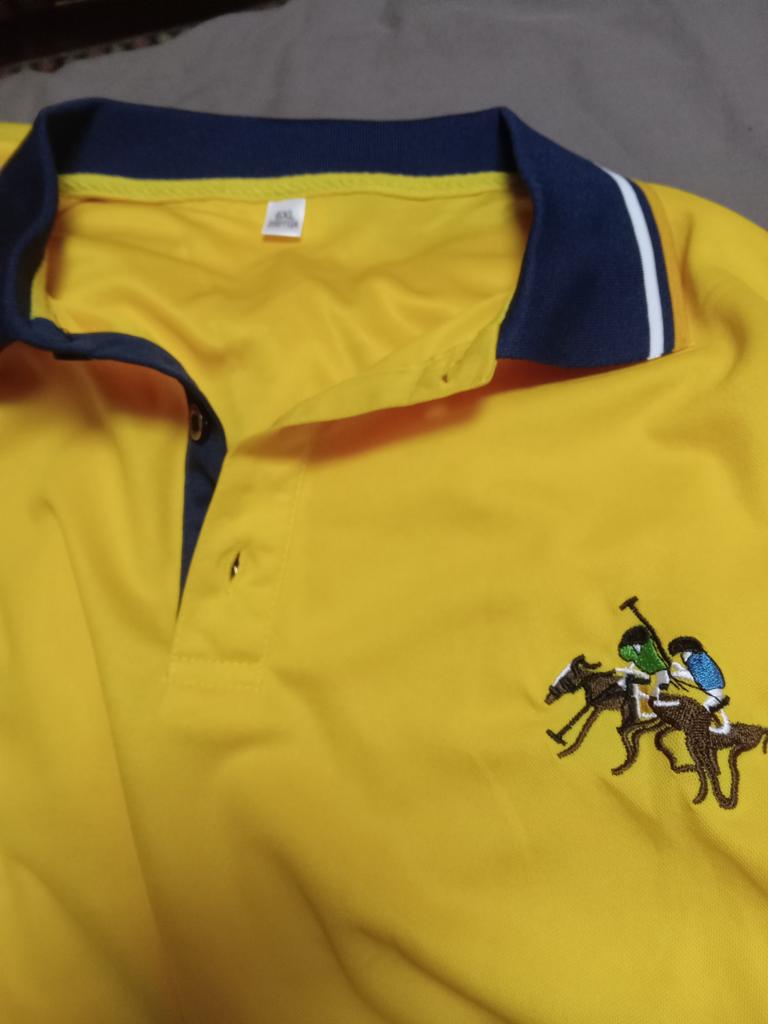 Men's yellow polo shirt with short sleeves.