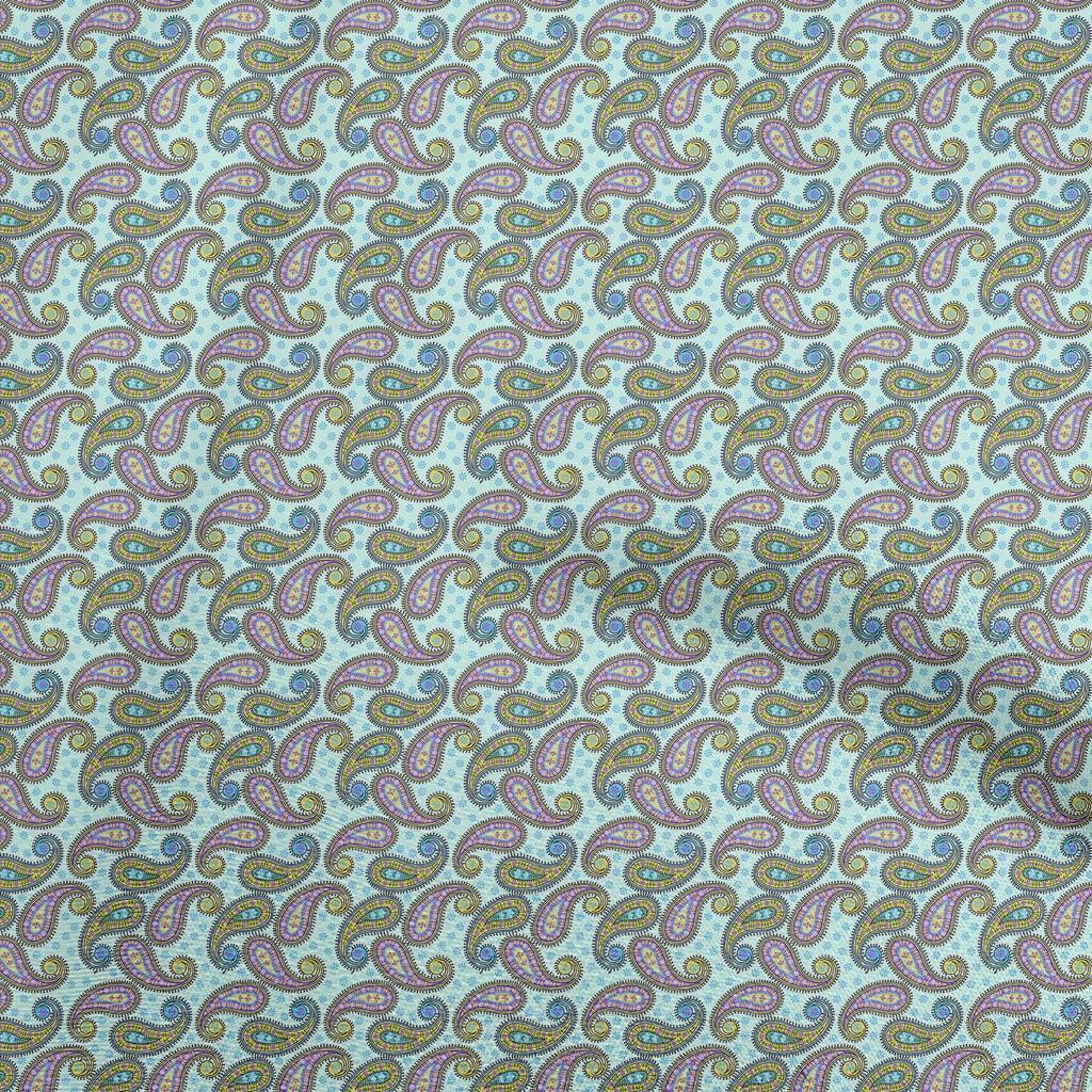 oneOone Cotton Flex Light Blue Fabric Asian Paisley Sewing Fabric By The Yard Printed Diy Clothing Sewing Supplies 40 Inch
