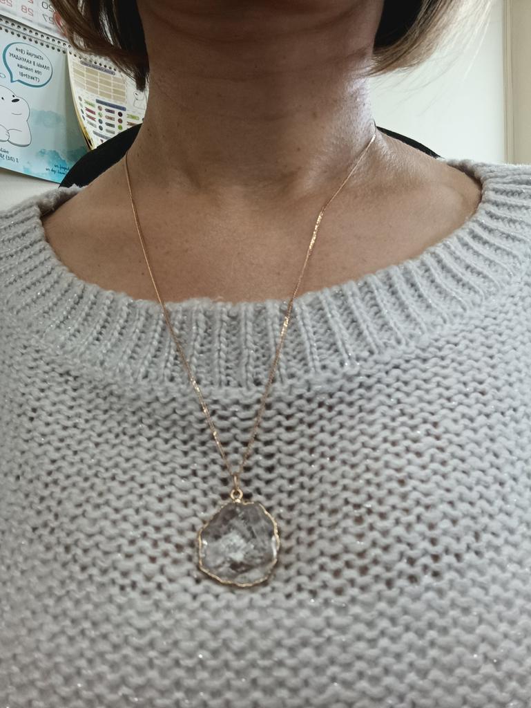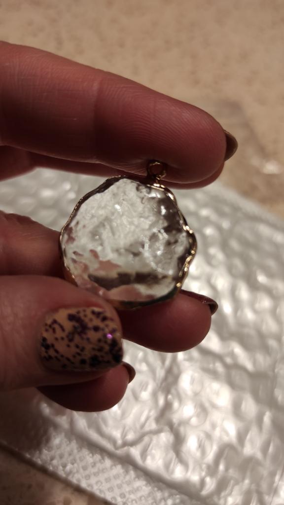 An interesting pendant, like a piece of ice in a frame. Delicate and matches my other jewelry.