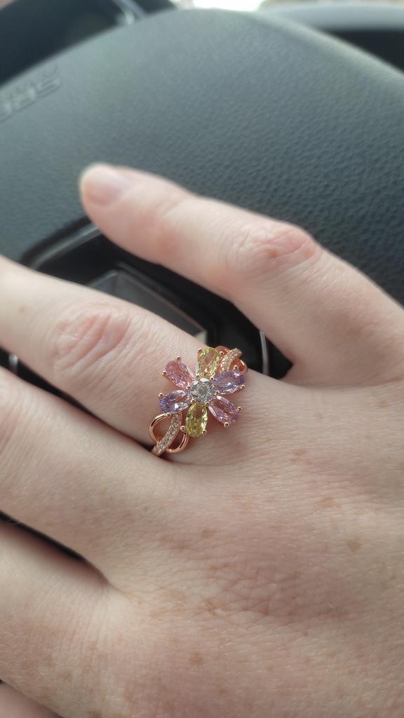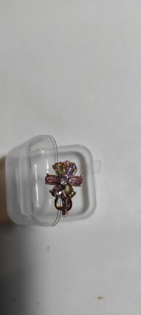 Kinel Rose Gold Rings Colorful Zircon Flower