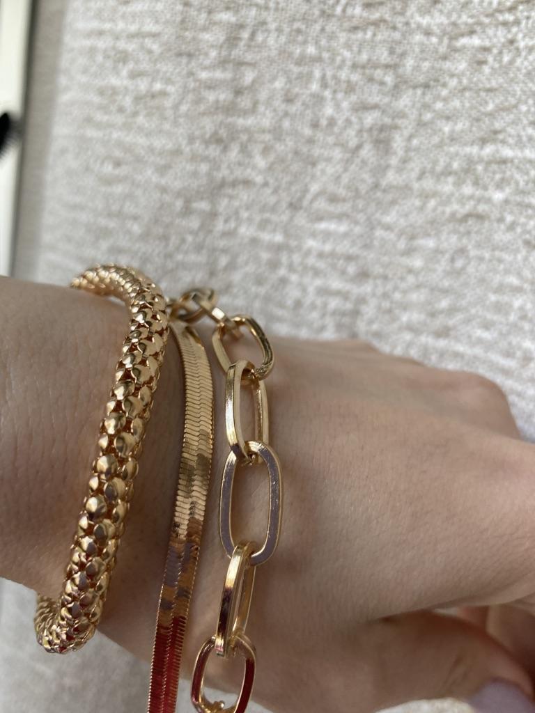Thank you. The bracelet is good, or rather three separate ones: a “snake” - on an elastic band, a flat one and large links - on locks.. Fits wrists up to 23 cm .