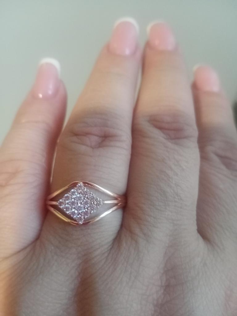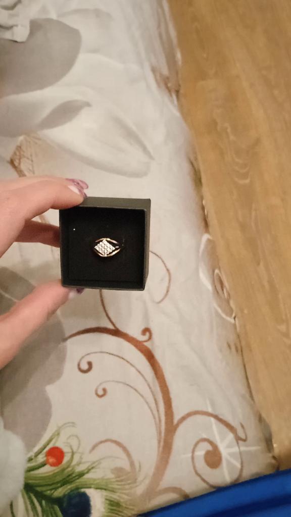 Very beautiful, neat, stylish, charming ring, stones like diamonds. Received in a box, there is a stamp on the ring. I recommend.