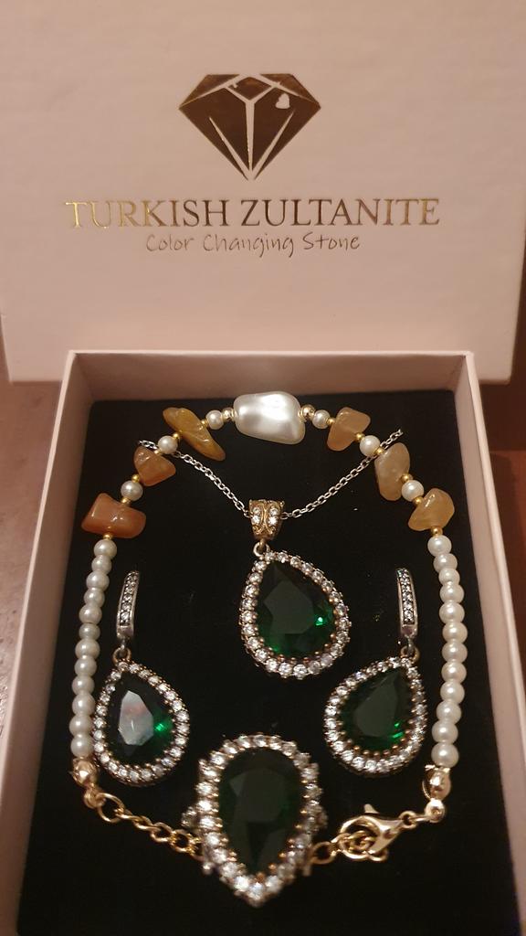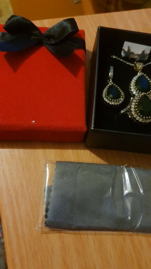 I bought this jewelry set out of curiosity to see what the quality is, I was surprised by this beautiful, rich and well made quality set 10 out of 10. I recommend sourcing jewelry from Turkey. At the same time, I received a pair of very nice earrings as a gift. And by the way the delivery was in a week.