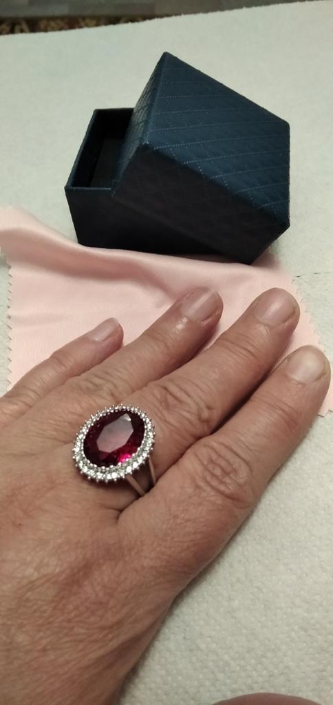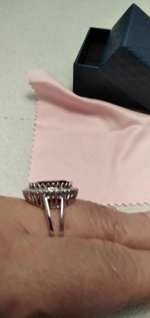 What an elegant and glamorous ring!! A few days ago I received this Joom order for this precious copper alloy ring with this beautiful brilliant garnet zirconia.. I loved the size as it is quite a large piece and that makes it stand out on its own. It is the center of attention every time I put it on and it seems to me the ideal complement for any look. Around the zirconia, the oval is surrounded by small diamonds that give it even more that touch of brightness and light.. 💍 The size corresponds perfectly and it fits me exactly as I wanted. I recommend ordering your usual size. 🚚 Shipping was fast, in about a week I had it at my house. 📦 It came inside a small envelope and when you opened it came a jewelry box with a pink chamois to be able to clean and take care of our ring. I find it ideal to wear with elegant looks to weddings, celebrations or other types of events. It is also the perfect gift for birthdays, mother's day, Christmas... ♥️ Highly recommended 👌🏻