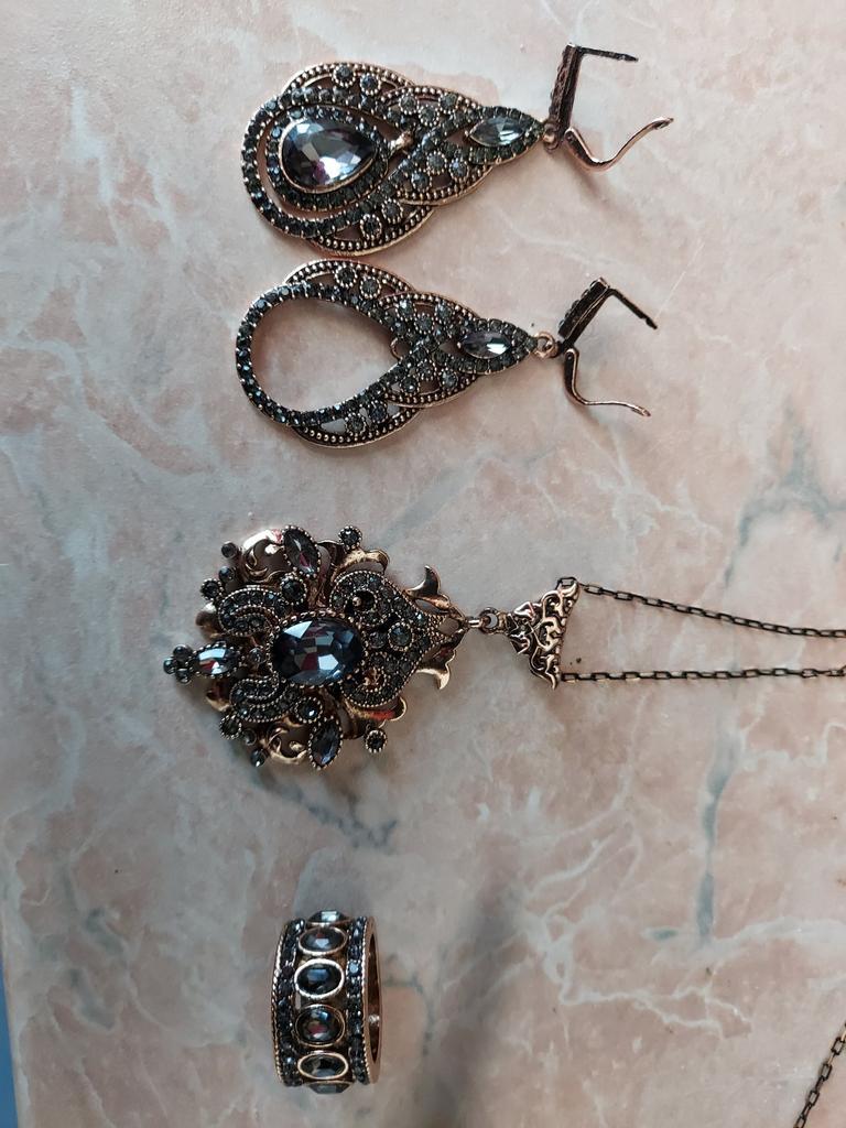 Insanely chic set. True, the ring is not enough for me, I gave it to my daughter. Thanks a lot.
