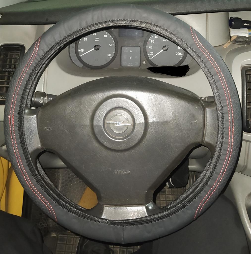 Everything according to the photo. Soft, stretchy artificial leather with an elastic insert. Made quite well. The steering wheel fits snugly.. You can't feel with your hands that the steering wheel has become rougher.. Time will tell how high-quality the material is and how long it will last.. To protect the steering wheel, that's what. Eto wants better, pays for the steering wheel tightening.