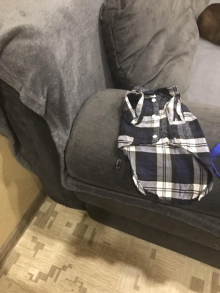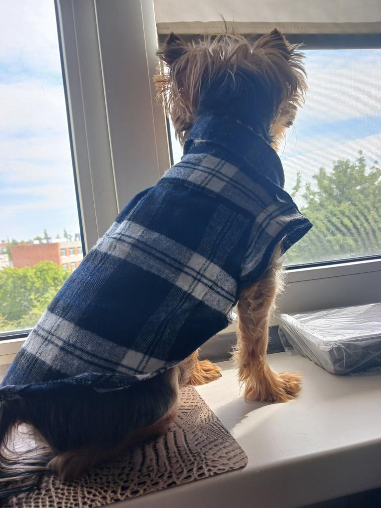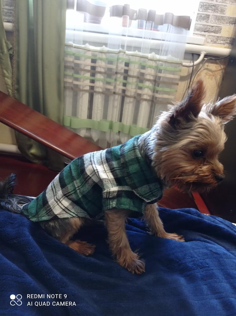 An excellent shirt for a 6-month-old mini Yorkie puppy, before this I took size M, they were just right, but this size is too big for us😀. The fabric is flannel, sewn well, I recommend it.