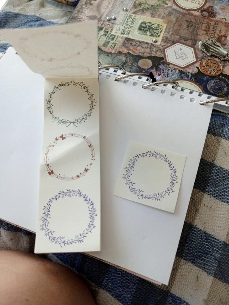 Honestly, when you see “sticky notes” in the title, you expect a sticky edge on the leaves These are just pieces of paper, there are perforations between the drawings. It's a shame, but not fatal, the wreaths are beautiful