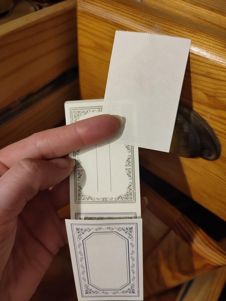 Cute, thin pieces of paper. There are dotted slits between them for easy separation. Thank you