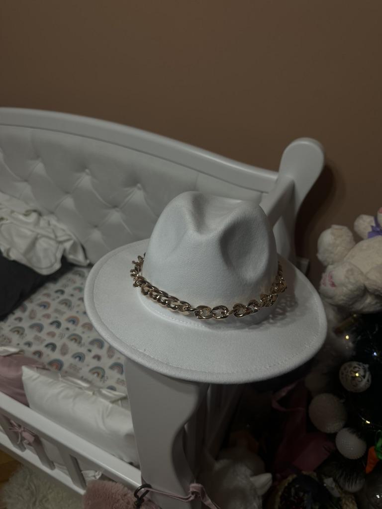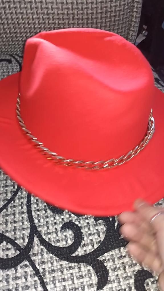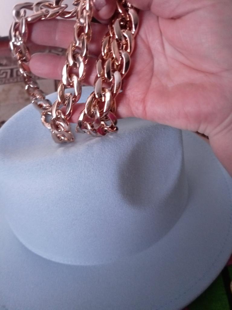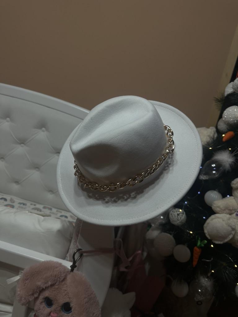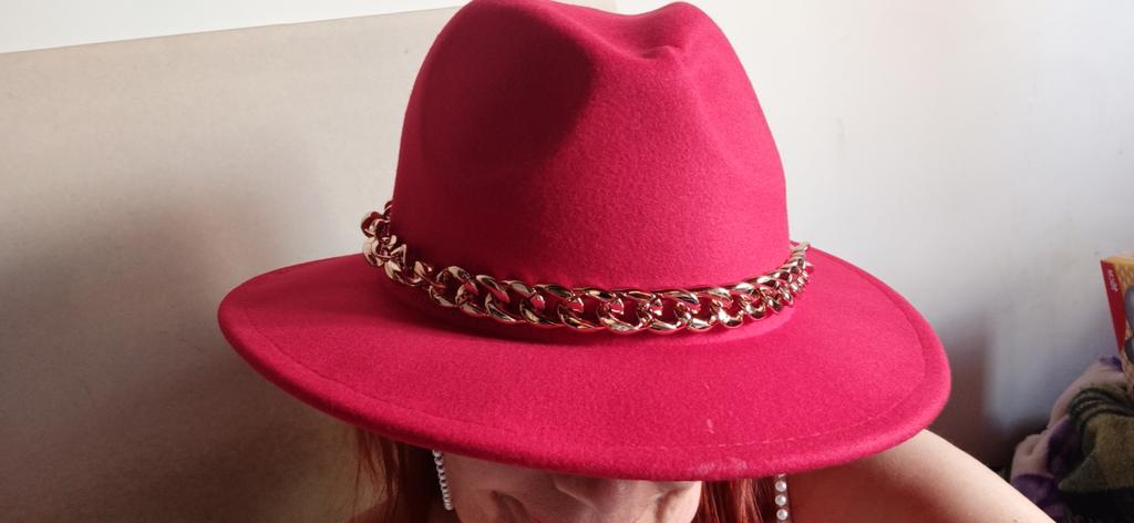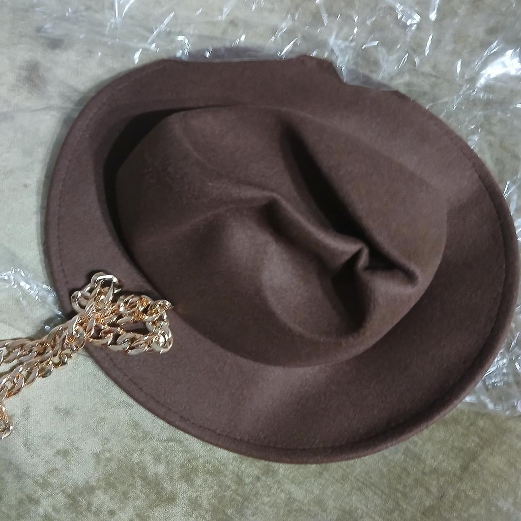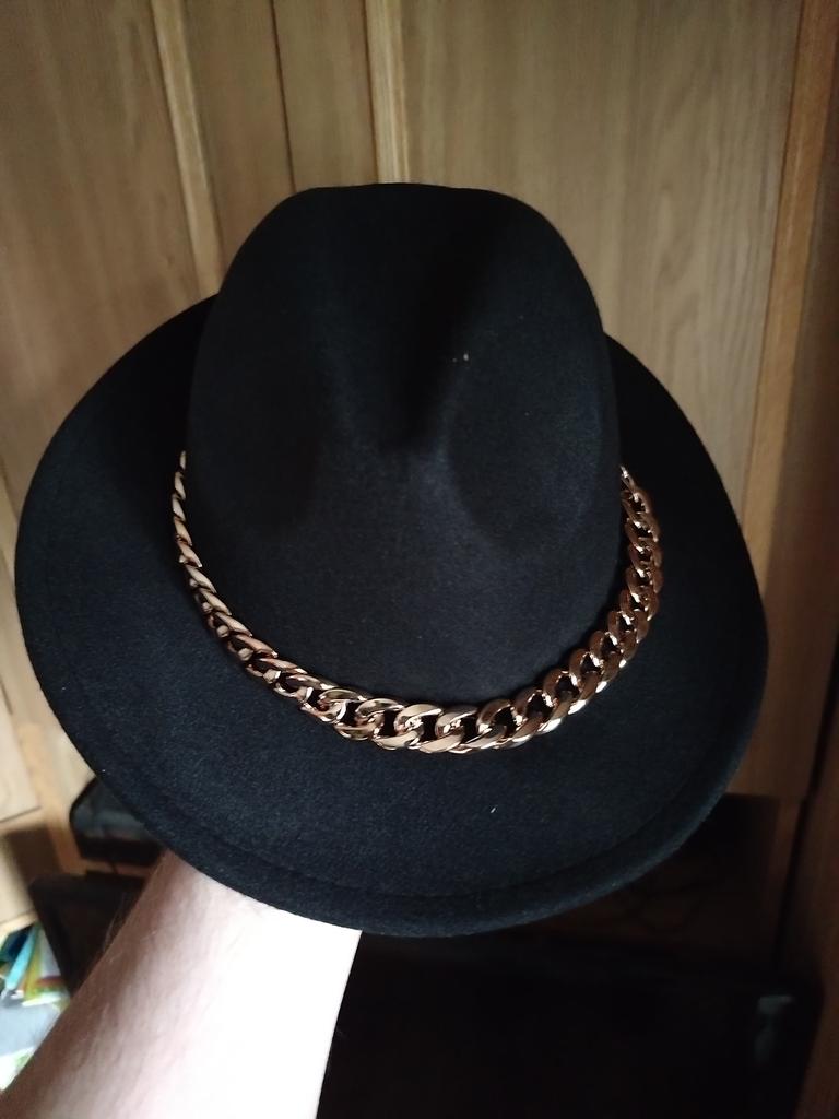 The hat is good, arrived in good condition, the color and felt are of good quality, the chain is not fixed, you can make it yourself if you wish. Thank you, I am happy, sometimes you can buy good things here!
