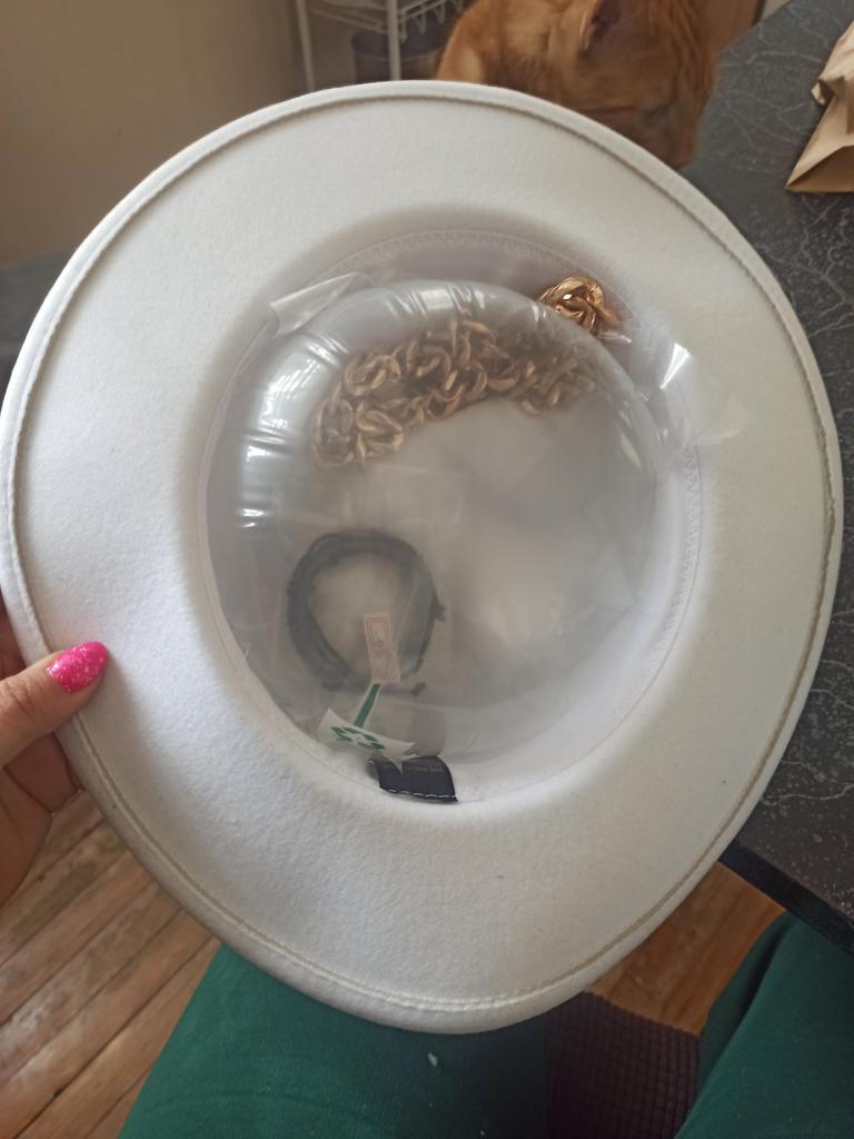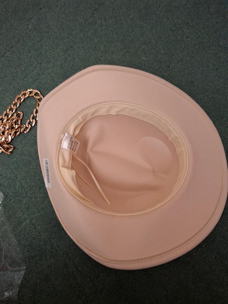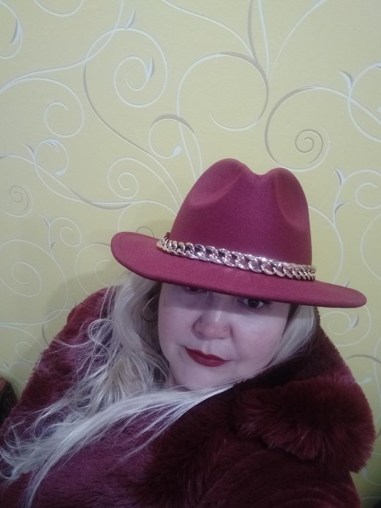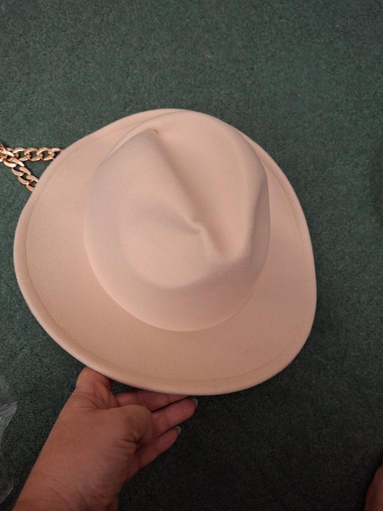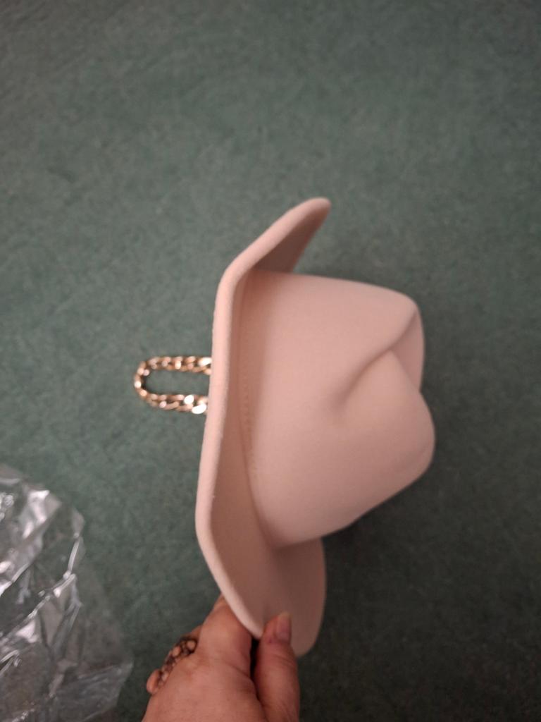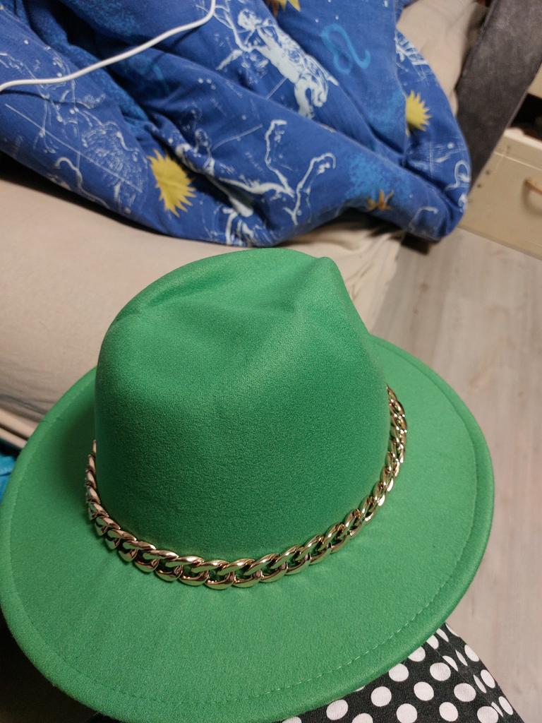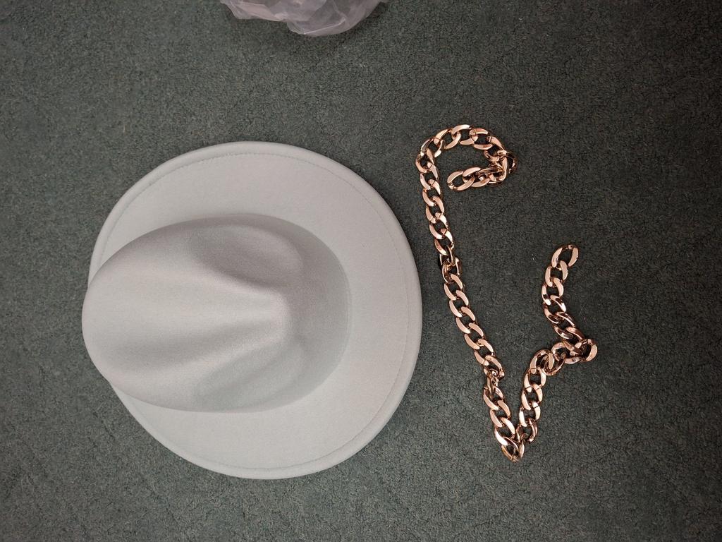 The hat is good, arrived in good condition, the color and felt are of good quality, the chain is not fixed, you can make it yourself if you wish. Thank you, I am happy, sometimes you can buy good things here!