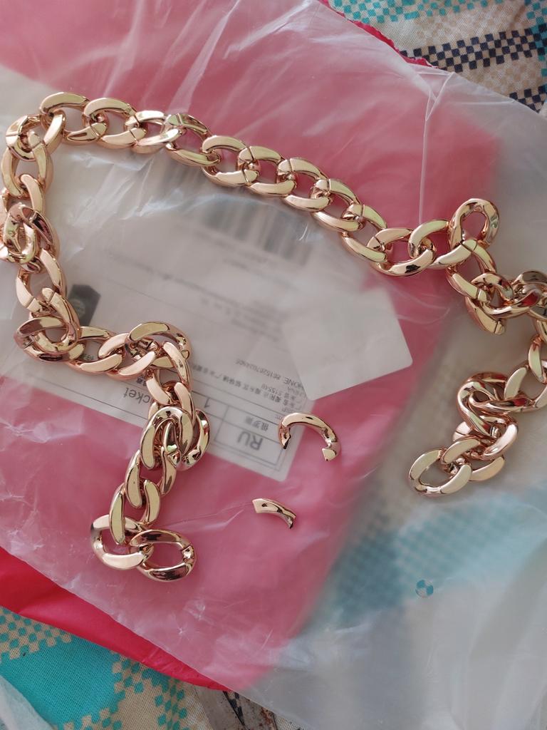 The chain arrived short and does not fit on the hat. 3 chain links missing