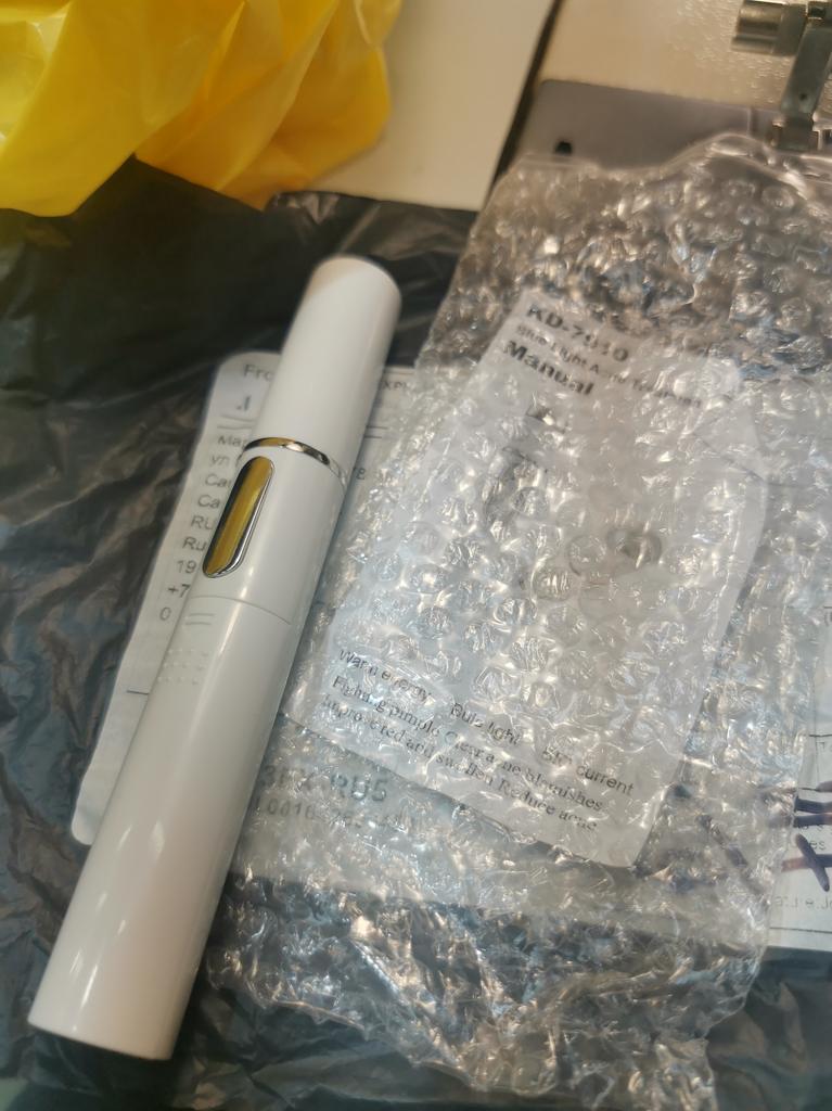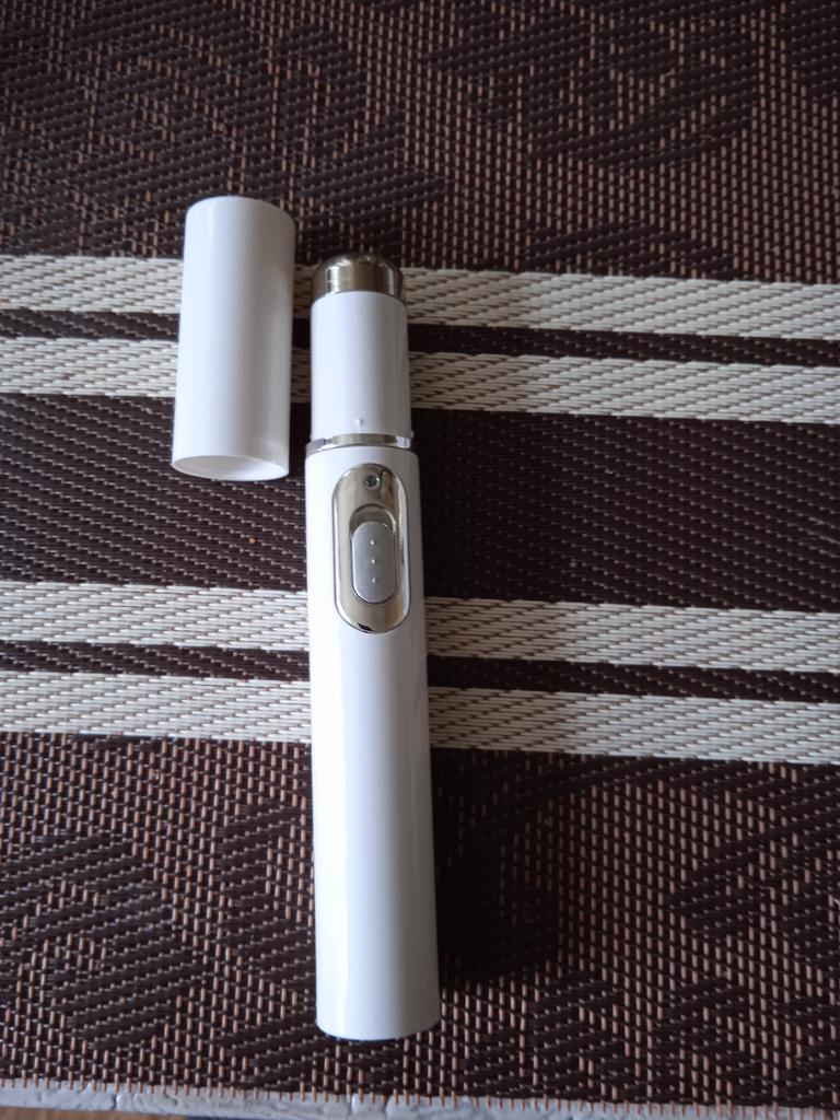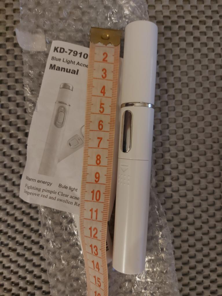 Unfortunately, I am not at all satisfied with this laser pen KD-7910. It is simply a pen with a battery and a small lamp that shines blue. Nothing more. An effect or any change to the skin is not noticeable. In my opinion, this borders on customer fraud … It would have been too good to be true.