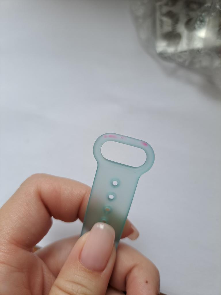 On the clasp of the strap there are pink stains that do not rub off and which are very noticeable on the translucent blue background, it's a shame. And without this defect, they would look great.