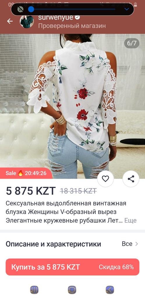 Sexy Hollow Out Vintage Blouse Women V-Neck Elegant Lace Shirts Summer Printed Short Sleeve Blouses Female Casual Tops 19361