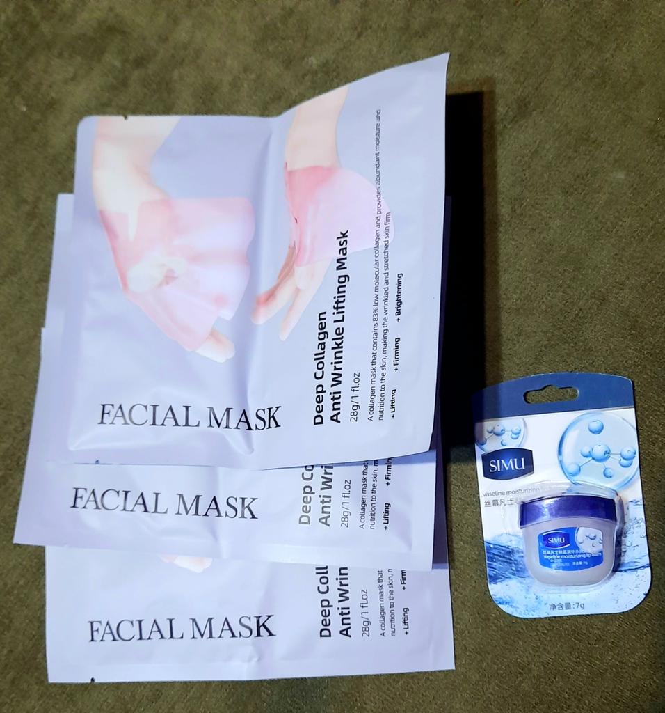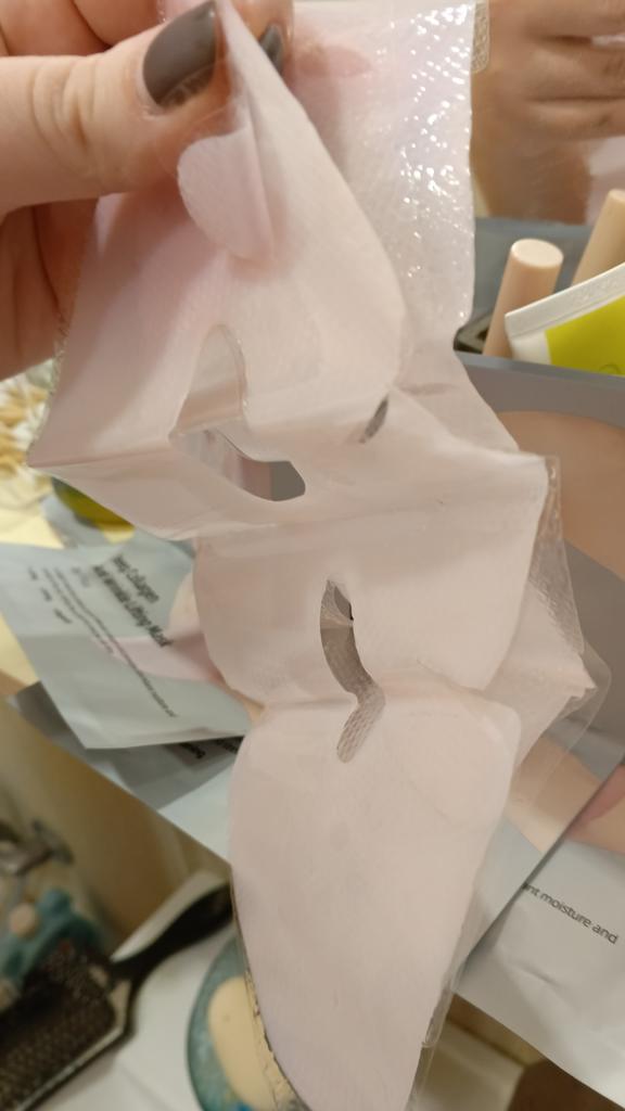 Super moisturising collagen mask with seaweed.The mask has jelly texture and lots of serum inside,even a bit too much.Very easy to apply,30 min to leave on,skin afterwards is supple and cool.The only thing is my skin broke down afterwards so maybe it's not suitable for me.Came in 2.5 weeks.Happy Shopping!