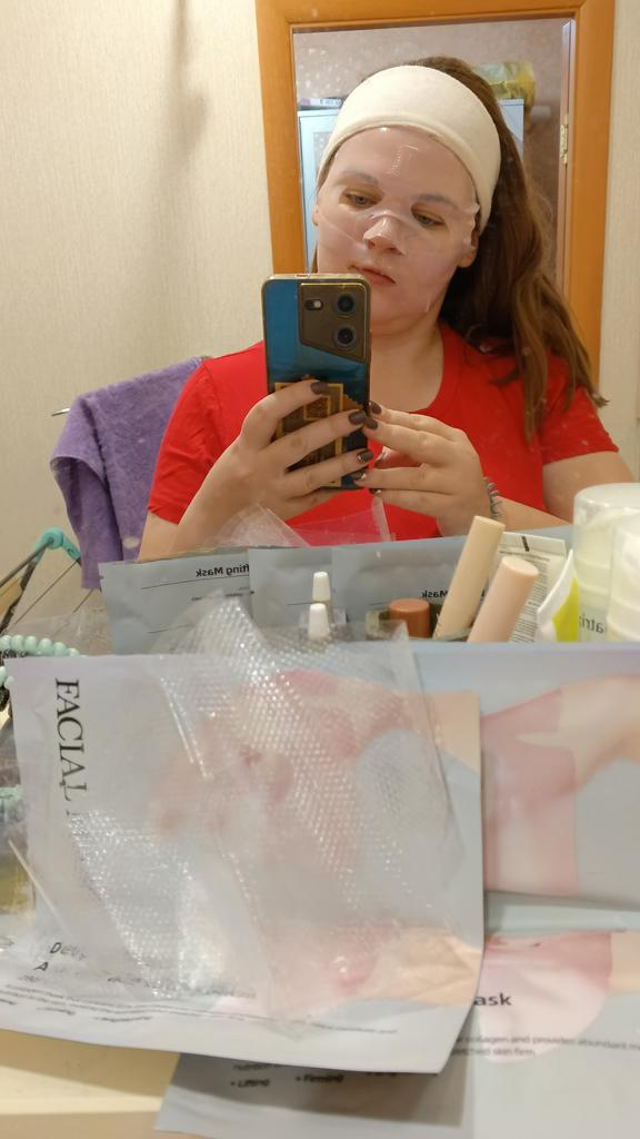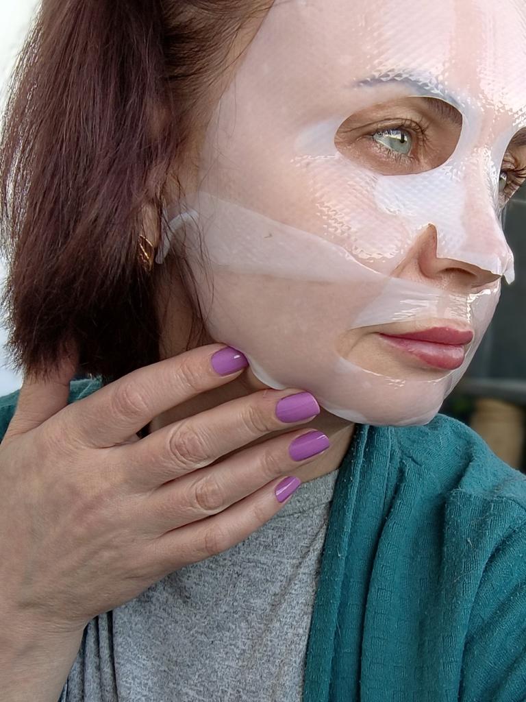 Collagen hydrogel mask with seaweed extract 💙 I did not expect such a wonderful effect😍 After using it, the skin felt so fresh right away! The tone evened out and became lighter, the relief leveled out and a healthy glow appeared. There is a lot of liquid in the package, the hydrogel mask is cool, which is pleasant for the skin. I am very satisfied with the effect and the price, I will definitely order more 💙