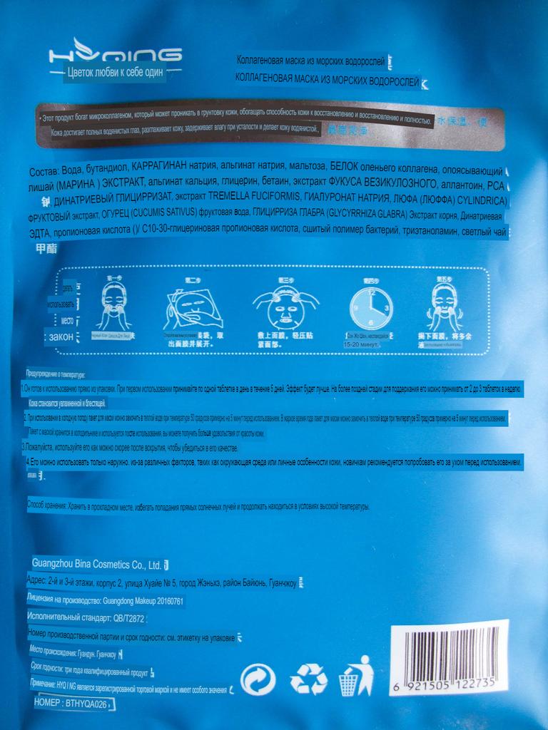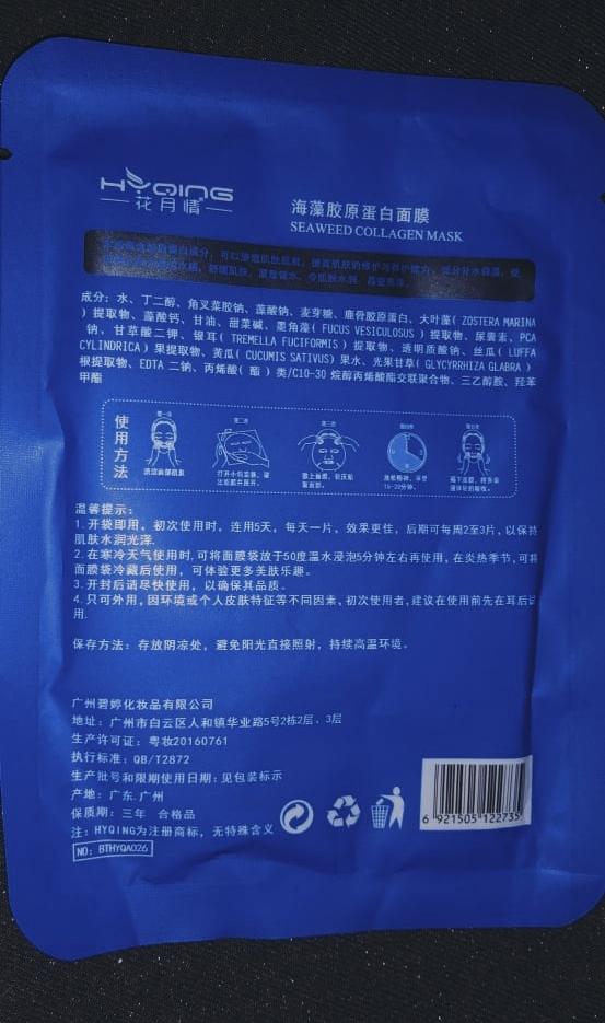 Collagen mask with hyaluronic acid and seaweed extract from the brand Hyqing 💙 The brand is well known to me, I buy their products not for the first time. The result is always pleasing ☺️ The mask intensively moisturizes, compensates for the lack of moisture in the skin cells, tightens the oval of the face and makes the color more even. Provides powerful protection against environmental influences, eliminates inflammation and peeling. The mask includes such useful components as: 💙 Hydrolyzed collagen is a structural protein that provides skin elasticity and also has a pronounced moisturizing effect. Gives the skin elasticity, smooths fine wrinkles, provides an instant lifting effect. 💙 Hyaluronic acid - intensively moisturizes the skin, creates a thin and invisible film on its surface, thanks to which moisture does not evaporate from the surface of the skin and remains inside. Hyaluronic acid also affects immune reactions, protects cells from free radicals, prevents premature aging, accelerates the synthesis of collagen and elastin, promotes wound healing. 💙 Seaweeds - strengthen cell regeneration processes, effectively remove toxins, improve tissue blood supply. They have an anti-couperosis effect, relieve puffiness and eliminate skin pigmentation. How to use: apply a mask on pre-cleansed facial skin and leave for 15-20 minutes. Before use, for the best effect, I recommend putting the mask in the refrigerator ❄❄❄ The mask has a pleasant aroma. I liked it. I recommend it 😉 We also do not forget the general rule: before use, do a test for an allergic reaction and do not use a cosmetic product if there is a rash, irritation or wounds on the skin. I received the goods in 25 days 🚚. The track was tracked completely. The arrival at the point of issue was announced by sms 📲 Packing: air-bubble envelope. On the package, almost all important information is in Chinese, but there are step-by-step instructions in the form of pictures. The dates are clearly marked. If the review was helpful, please 💖. Happy shopping and fast deliveries to everyone 🛍😊🚀🌷 And remember - every woman is a star, so shine brighter 🌟😘 PS: I invite everyone who is interested in promo codes for 10-15% to my Telegram channel: Olena.joom.thebest.😉