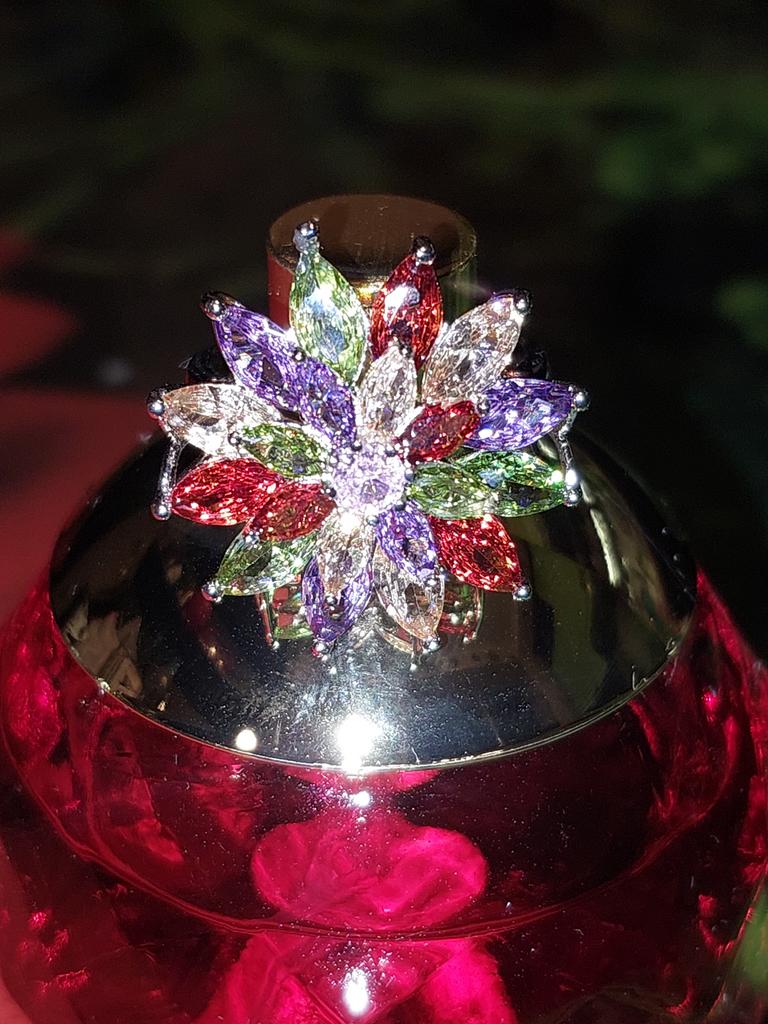 SODROV Crystal Rainbow Jewelry Rings for Women Colorful Zircon Flower Ring