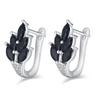 Black Awn Black Stone Leaf Shape Hoop Earrings for Women