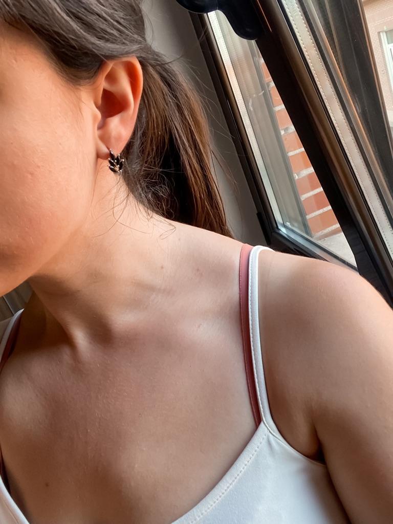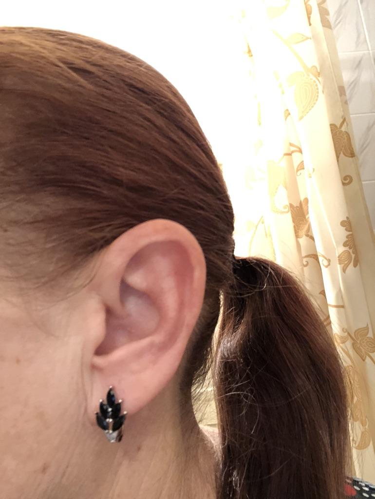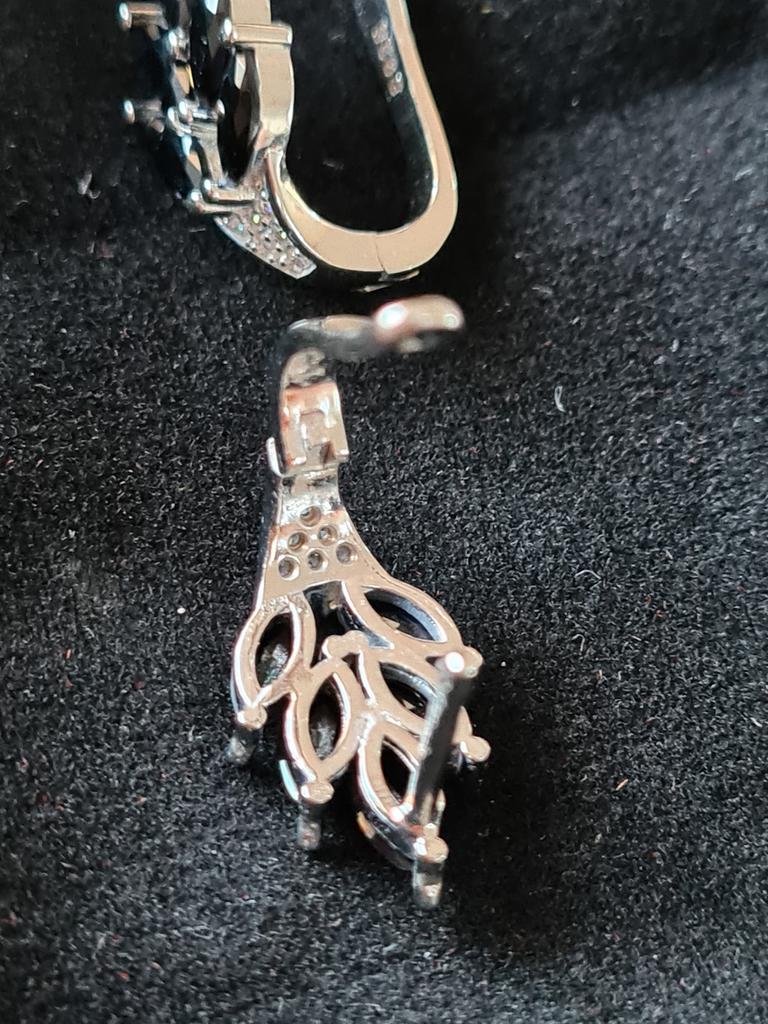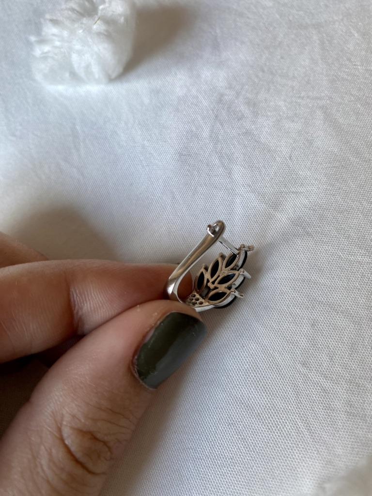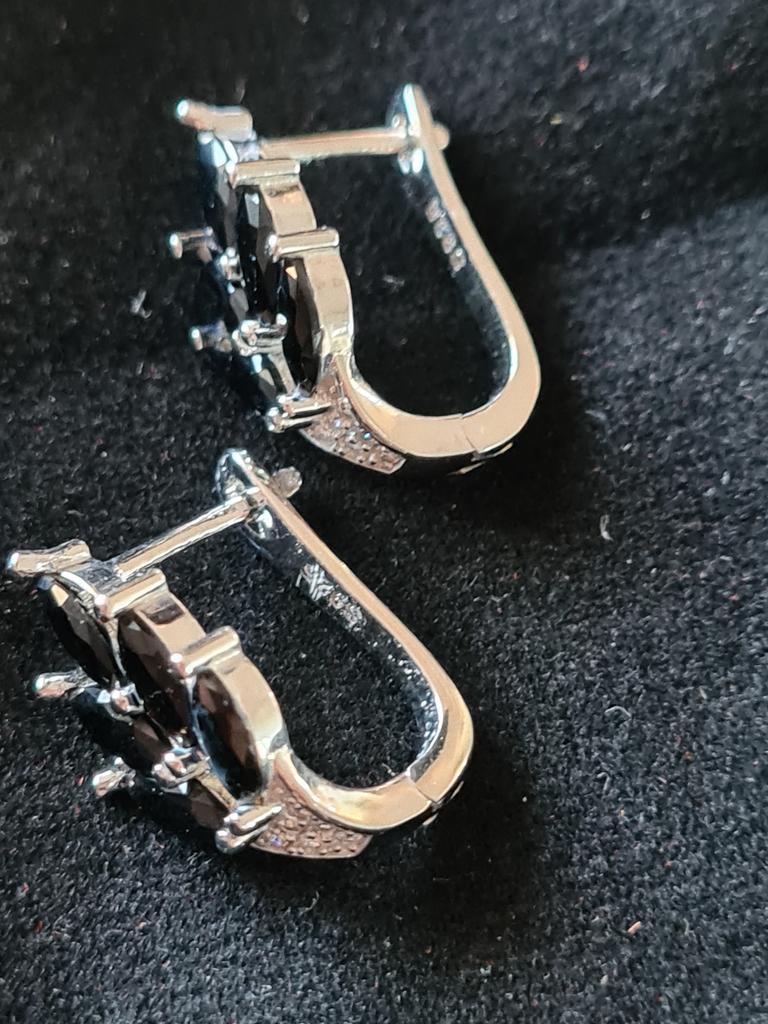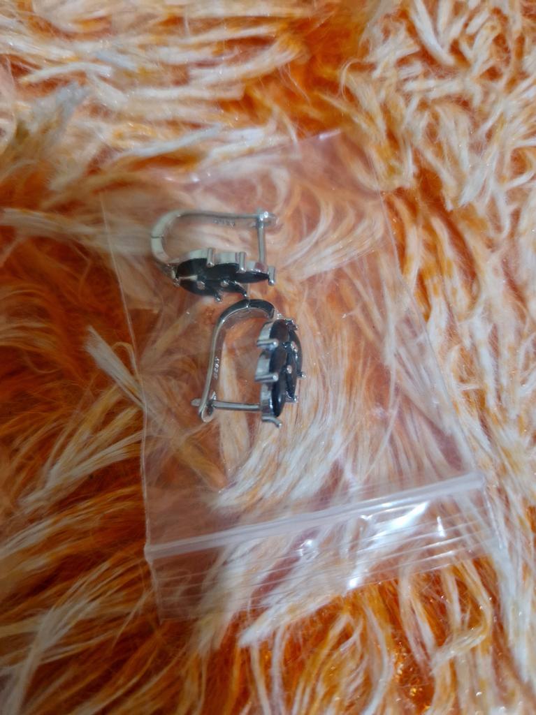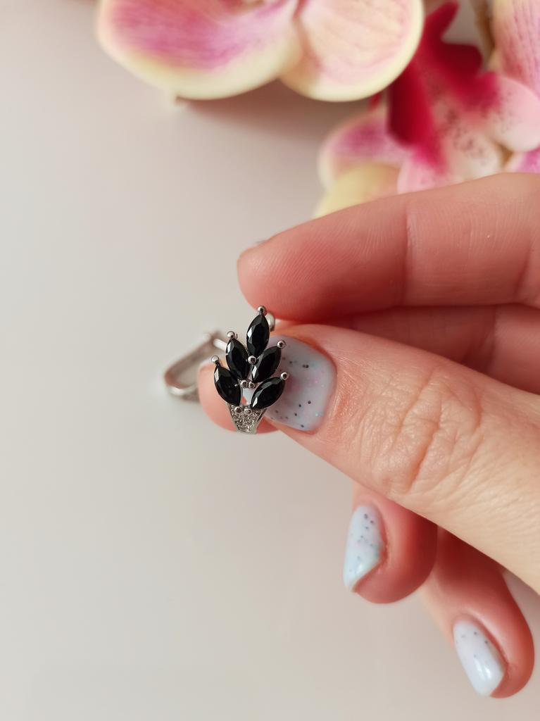 These earrings are an ideal accessory for any look due to their versatility and design.. In a silver color with black stones, they are a very elegant jewel and combine perfectly with both elegant and sophisticated looks and more casual looks for day to day.. The presentation is also very good. They came in a little black velvet bag so I also think it's a great gift idea. They have very good quality and the leaf-shaped design seems beautiful and original to me. Bring engraved numbering 925. The size is ideal, they are also light, do not weigh and therefore do not deform the ear. 🚚 Shipping was fast, it took about a week to get home. 📦 They came in a box and inside this the little bag. In addition, the earrings came in a plastic bag. They arrived in perfect condition. 🖤 Very good quality and great design. 100% recommendable