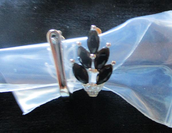 Very beautiful and unique earrings from Black Awn in the shape of leaves with black crystals.Came in the pouch,silver finish,has 925 stamp.Very light and comfortable to wear.Came in 3 weeks to Ireland.Happy Shopping!