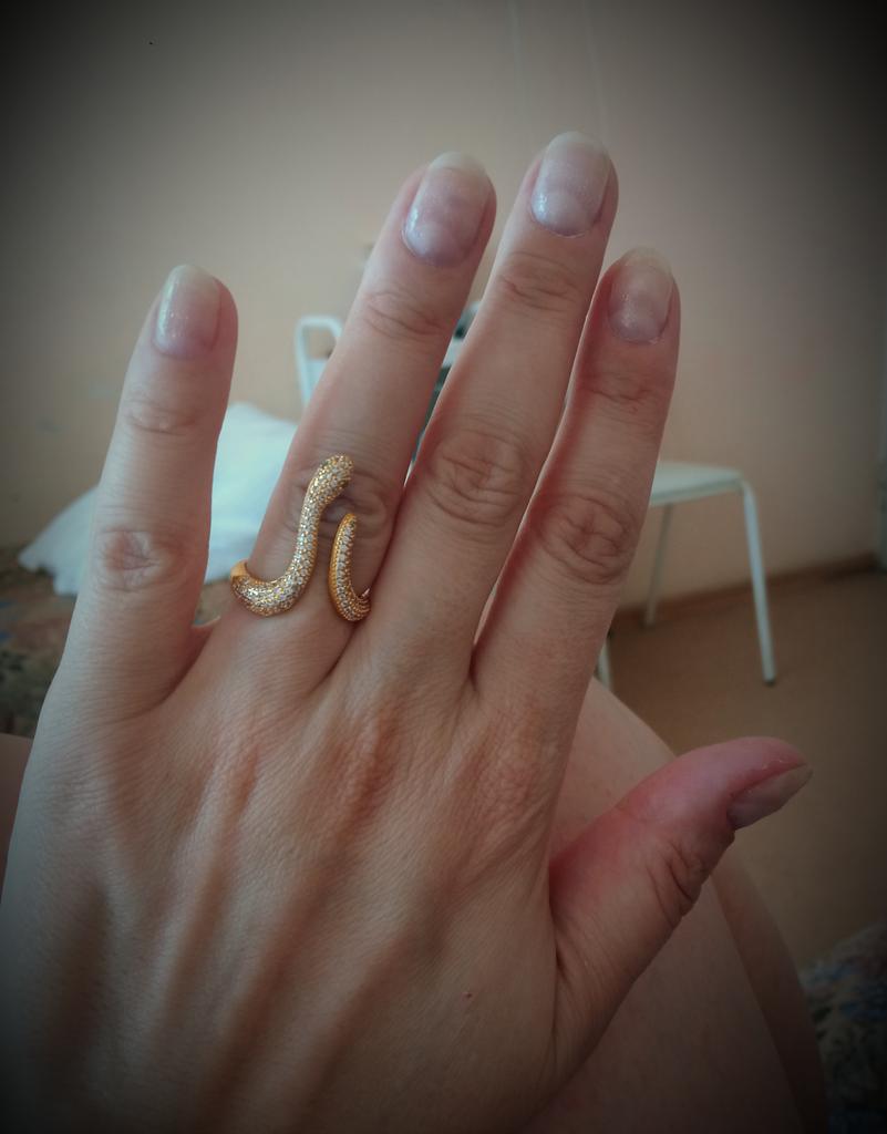 Ring Snake from Lindon. Original ring, ordered in yellow metal. Bought for 289₽ The parcel arrived quickly enough. The ring is detachable, but tight. I got it on my ring finger