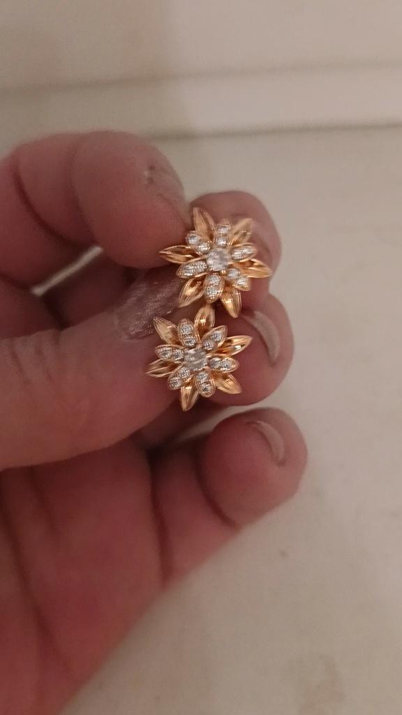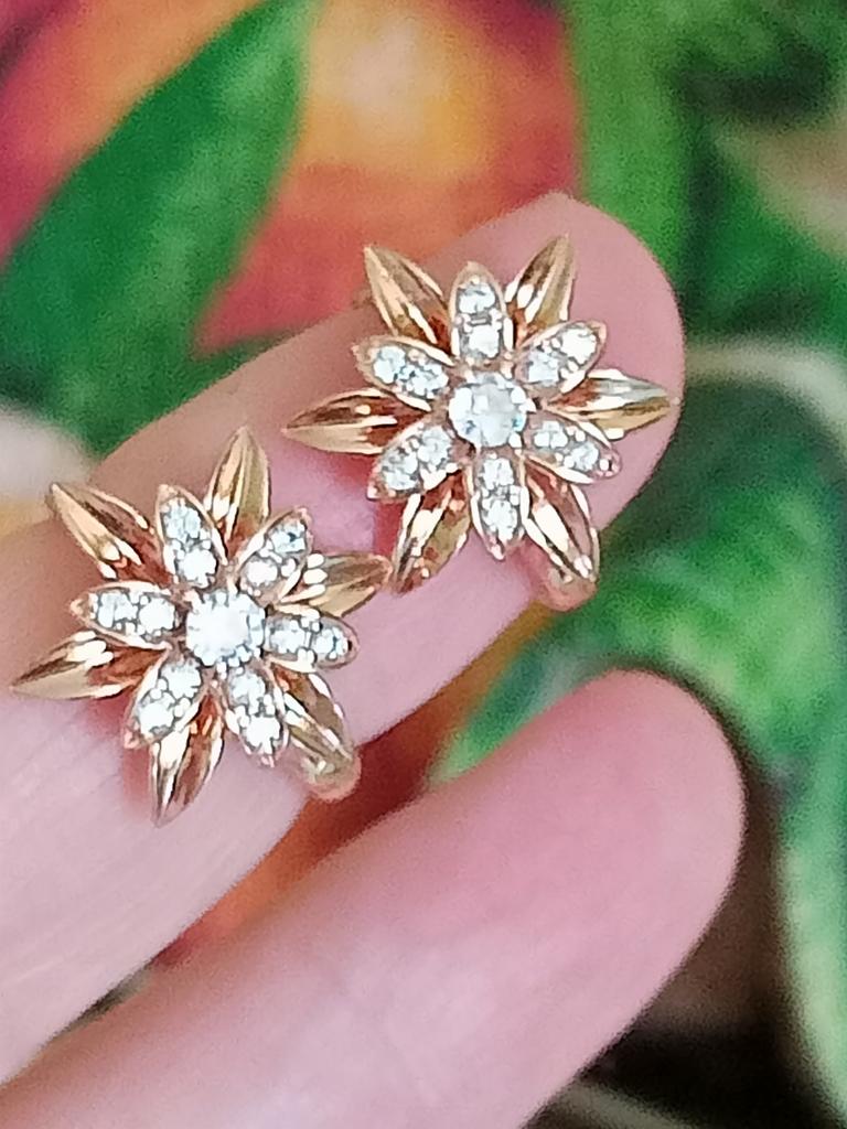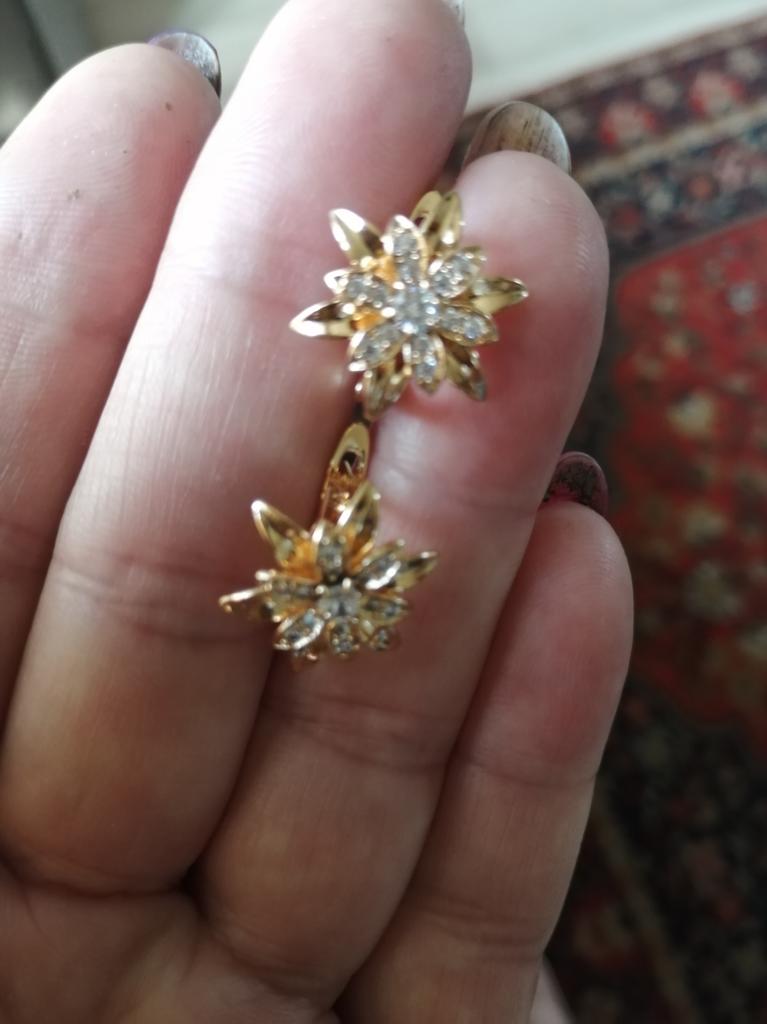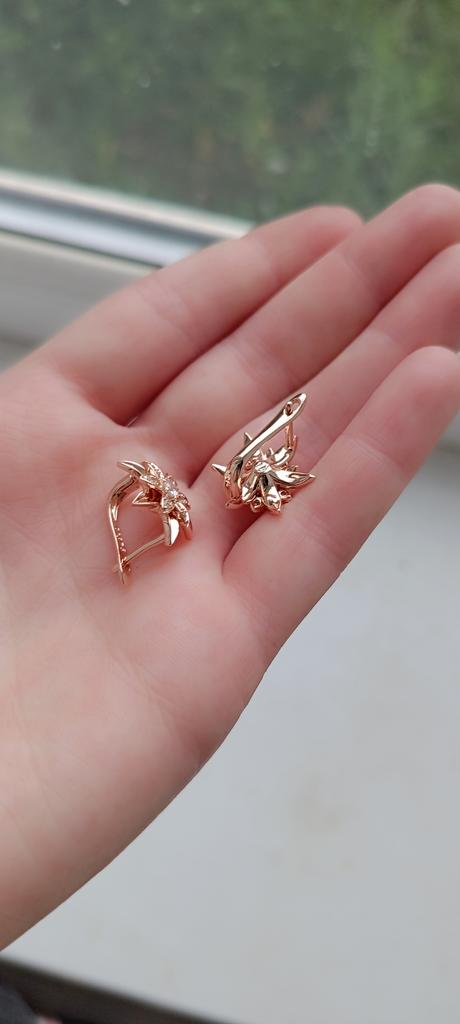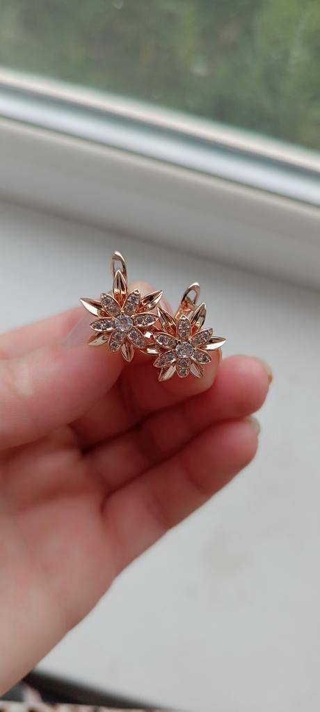 They are beautiful, they hang a little low for my ears, I expected the flower to be on the earlobe, and it is under) but they are bright and shiny, under rose gold. I recommend