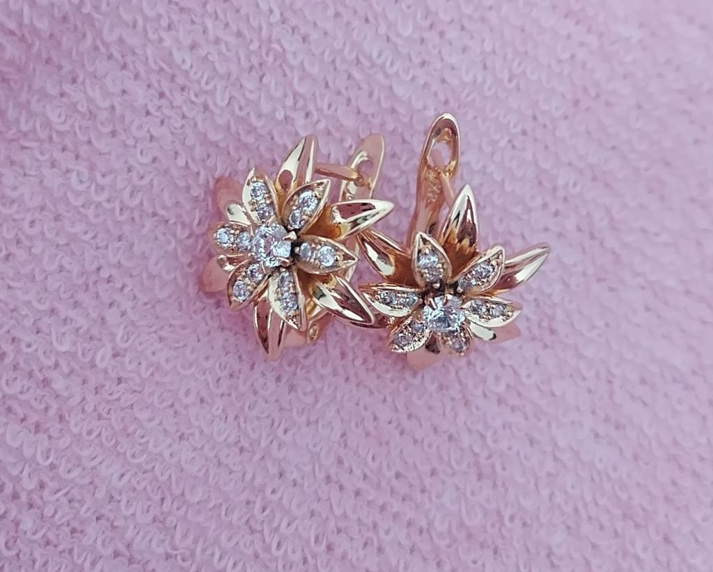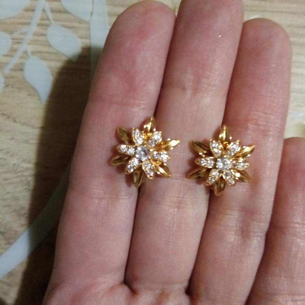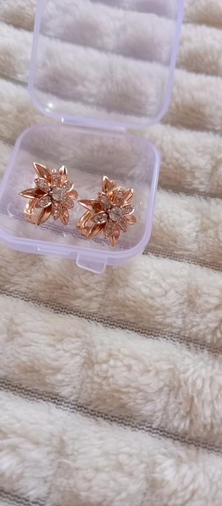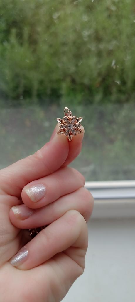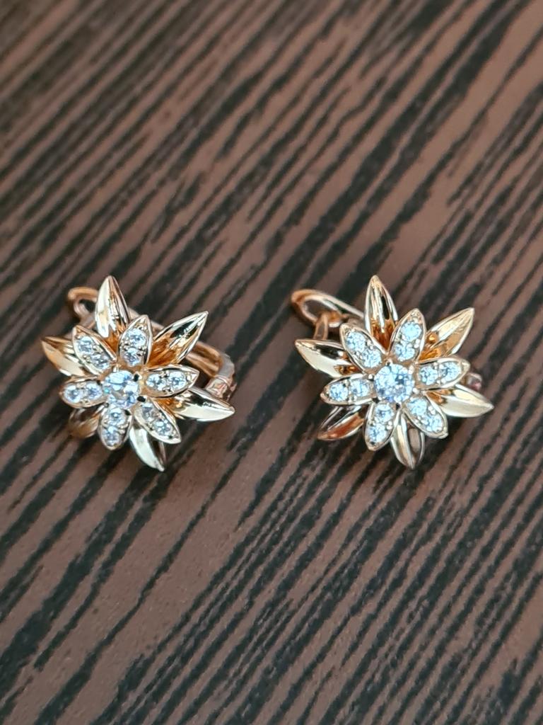 They are beautiful, they hang a little low for my ears, I expected the flower to be on the earlobe, and it is under) but they are bright and shiny, under rose gold. I recommend