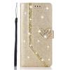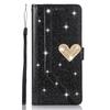 Luxury Bling Diamond PU Leather Flip Case Rhinestone 3D Love Heart Glitter Wallet Cover for iPhone Samsung Huawei