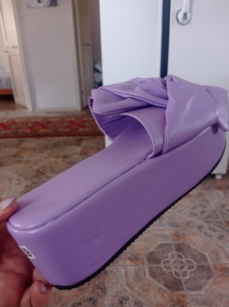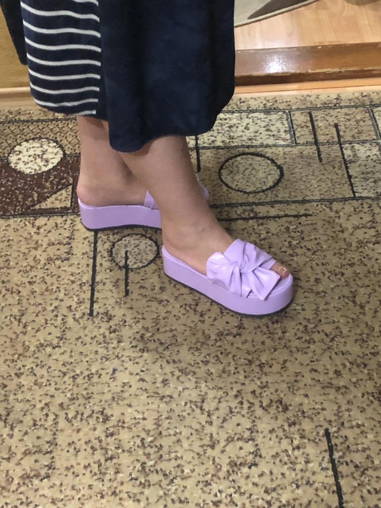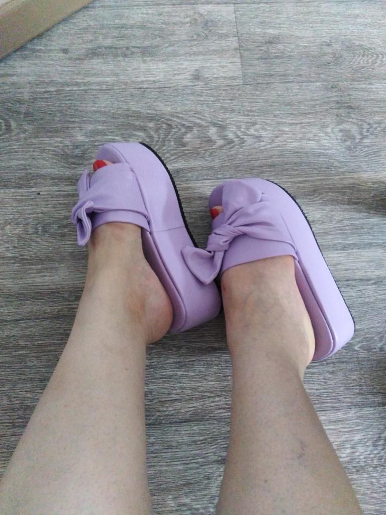 Excellent slippers, very comfortable, look beautiful, soft, high instep. Suitable even for those who have an underwire; the bow delicately hides this flaw. Delivered quickly, packaged normally, no idea, but there was a slight smell, but it quickly disappeared. Very happy with the purchase!