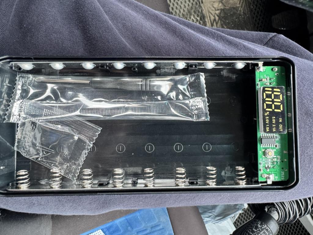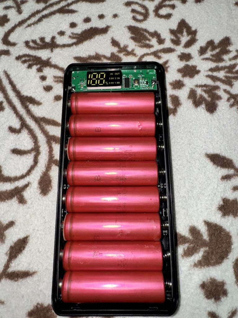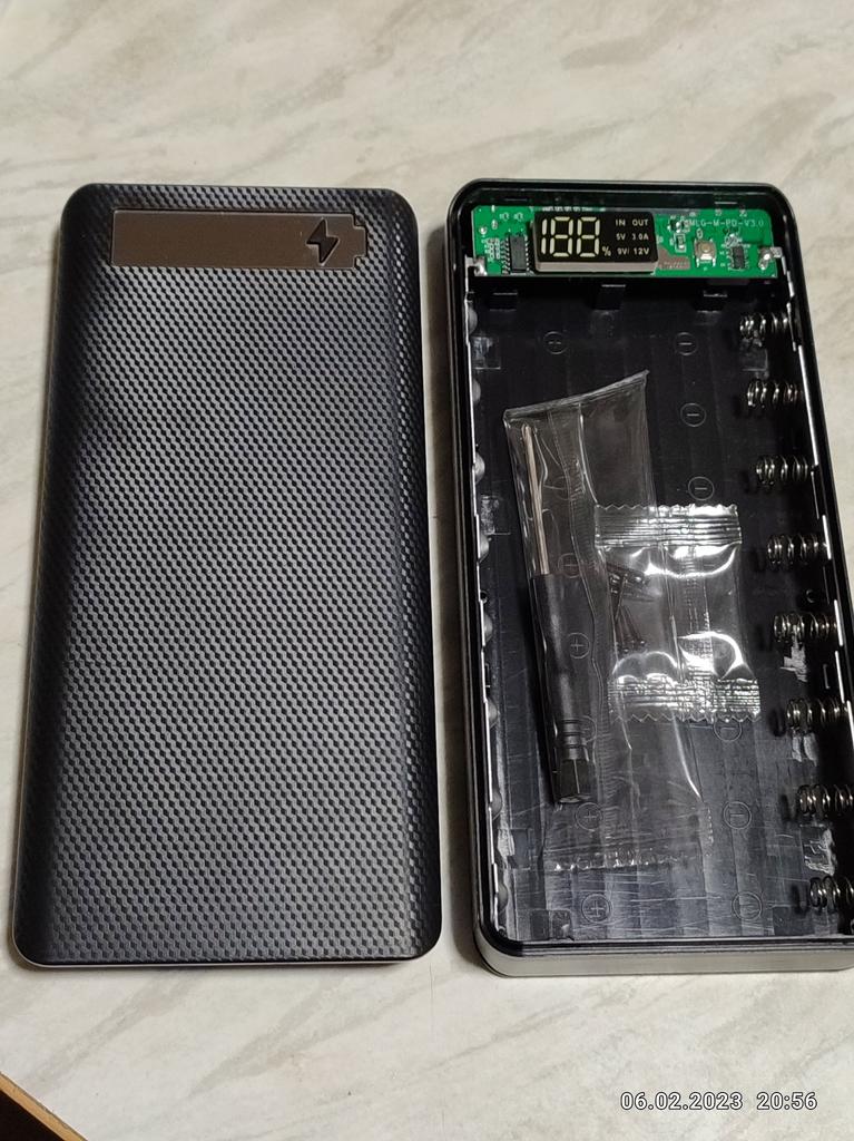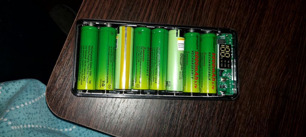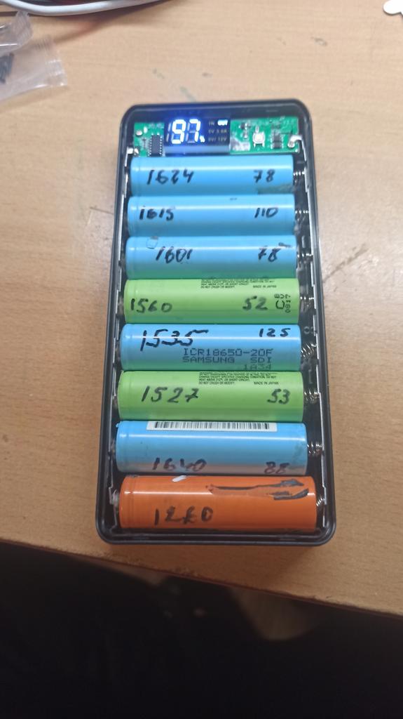 Quite a nice thing, even a screwdriver was sent inside, the material is pleasant to the touch, it works even with one battery, it does not require the full number of batteries. But there is one but, I inserted 8 lithium-ion batteries, which I just bought and left to charge overnight, as it was 38%, in the morning it remained, not even 1% was added. The indicator in is blinking, that is, input, but the charge does not go.