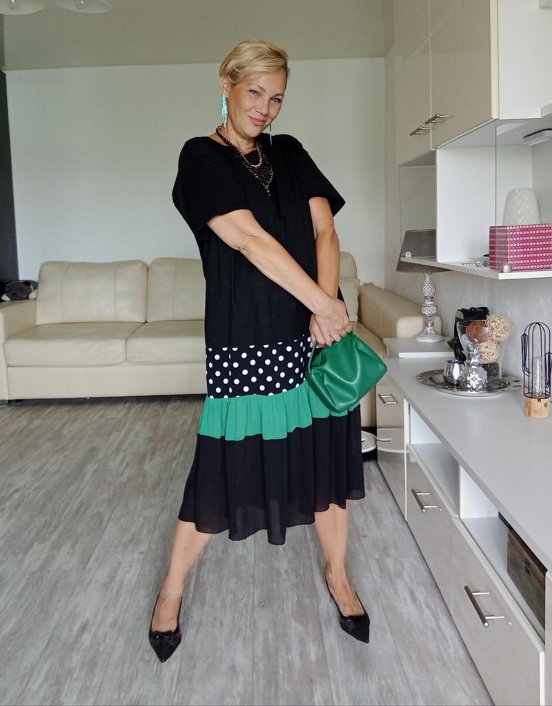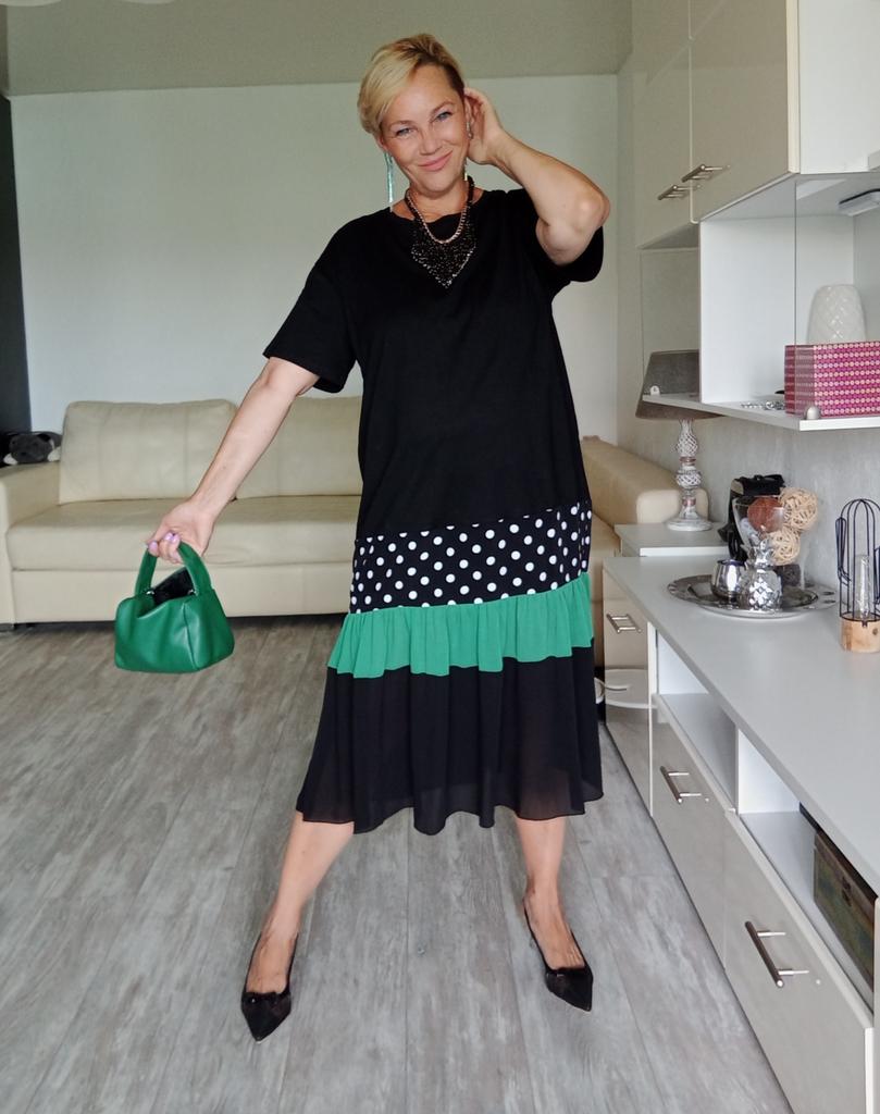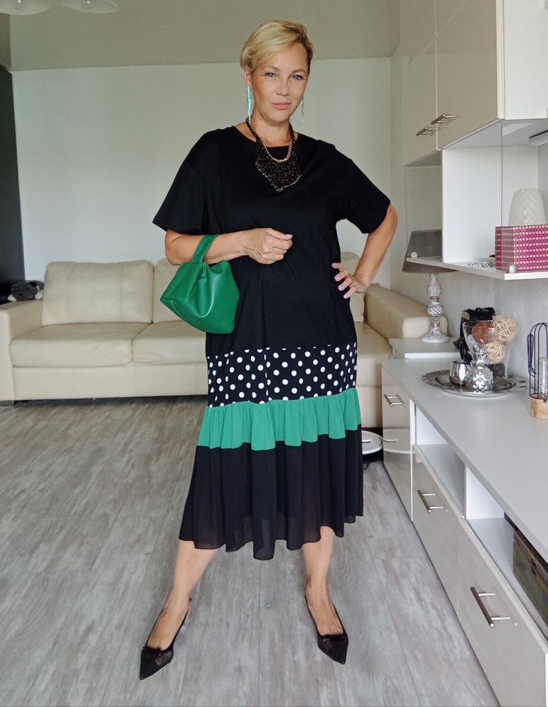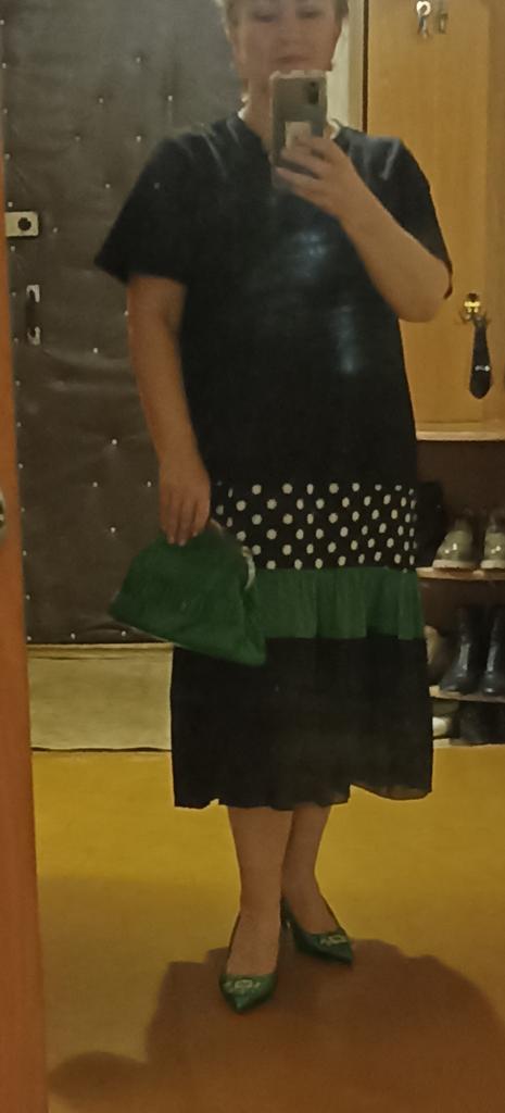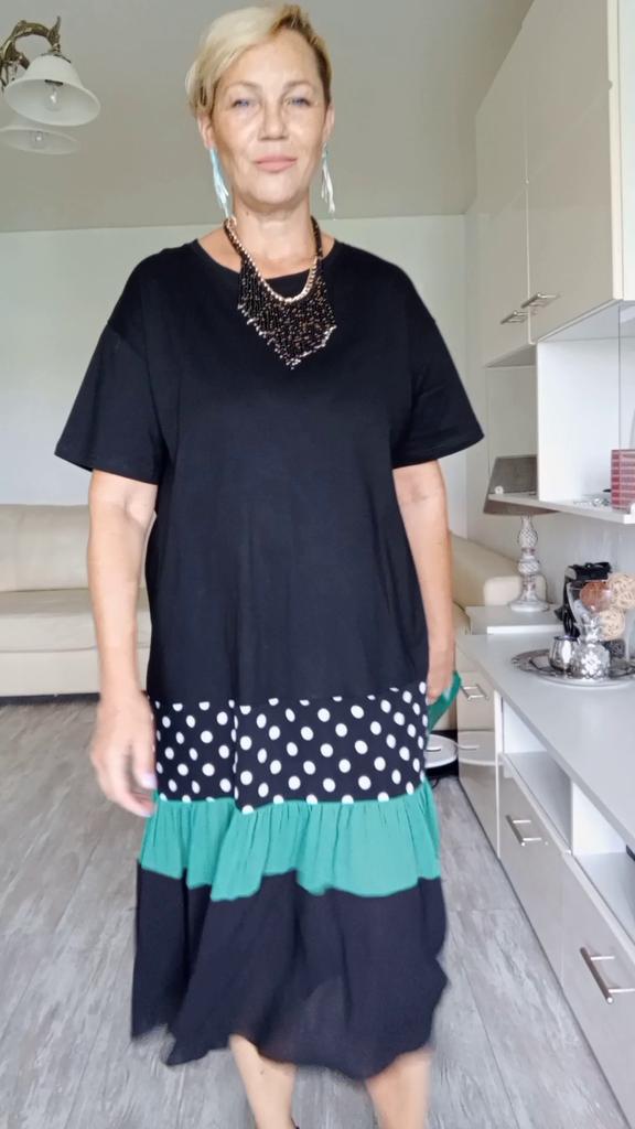 Beautiful dress, very original. The top is a tricot of good quality, the frills are made of georgette material.