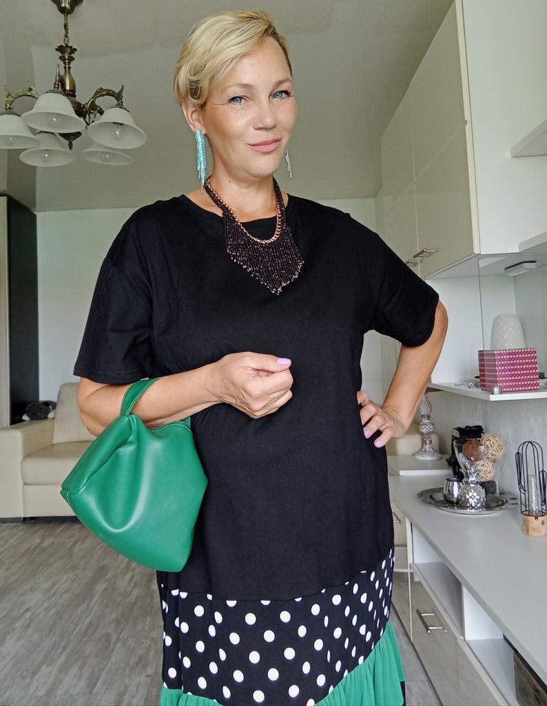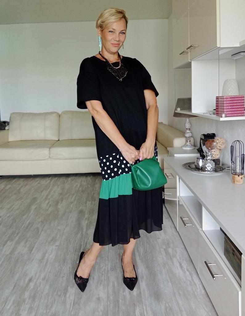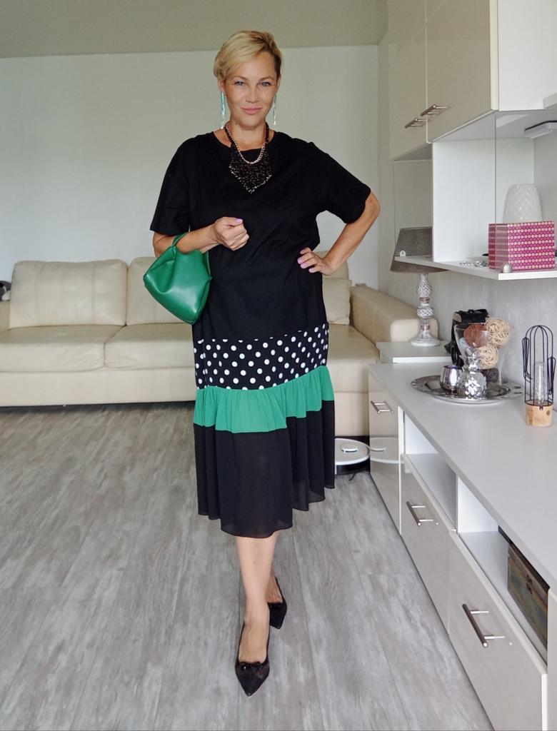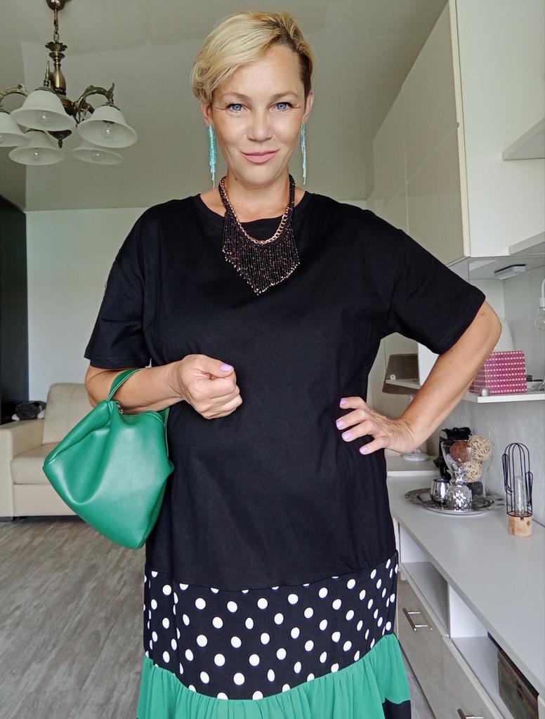 Beautiful dress, very original. The top is a tricot of good quality, the frills are made of georgette material.