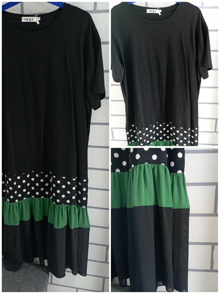 DIMANAF Summer Plus Size Fashion Women Elegant Lady Long Dress Black Polka Dots Spliced Cotton Loose Clothing