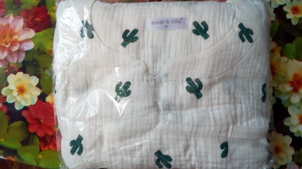 New Japanese Style Spring and Autumn Ladies Cotton Crepe Cloth Long-sleeved Trousers Pajamas Cactus Comfortable Home Service