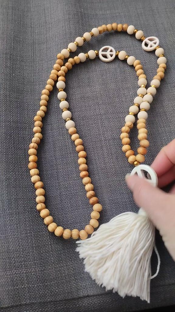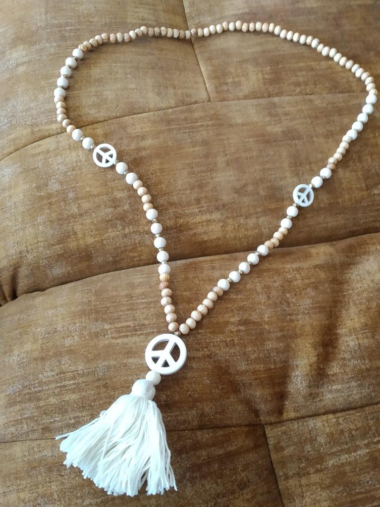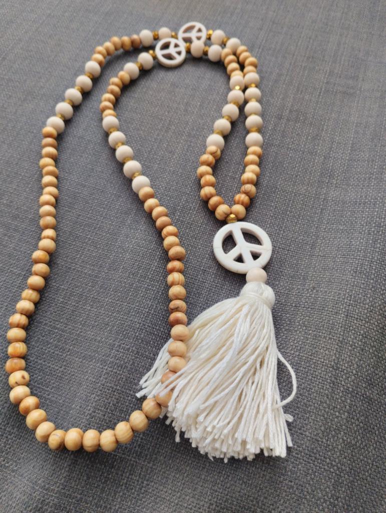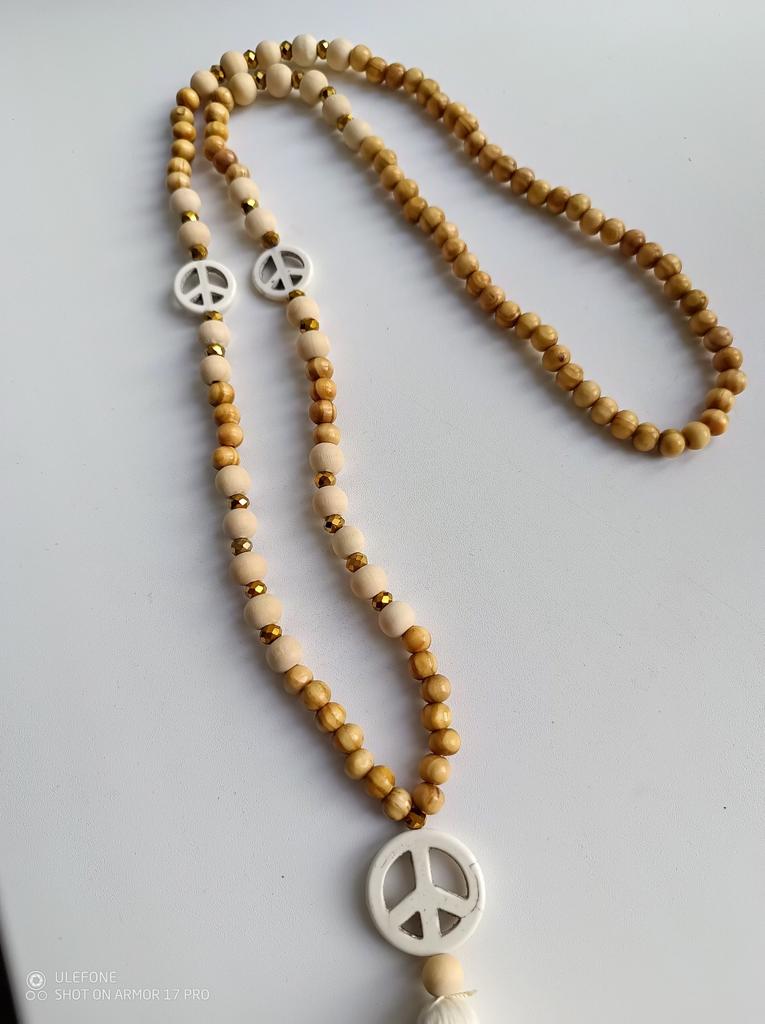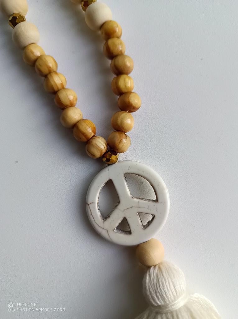 Peace Pendant Necklace For Women Boho Aesthetic Tassel Wooden Beads Jewelry