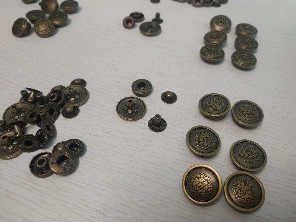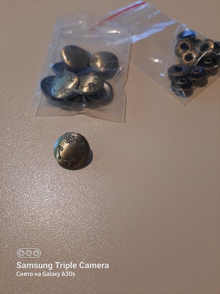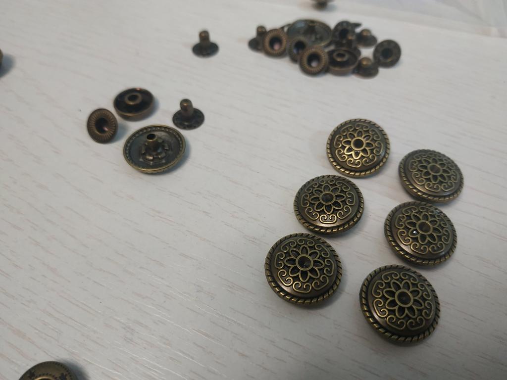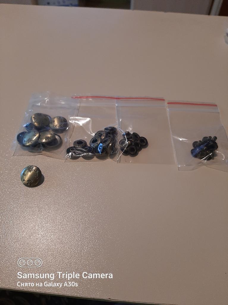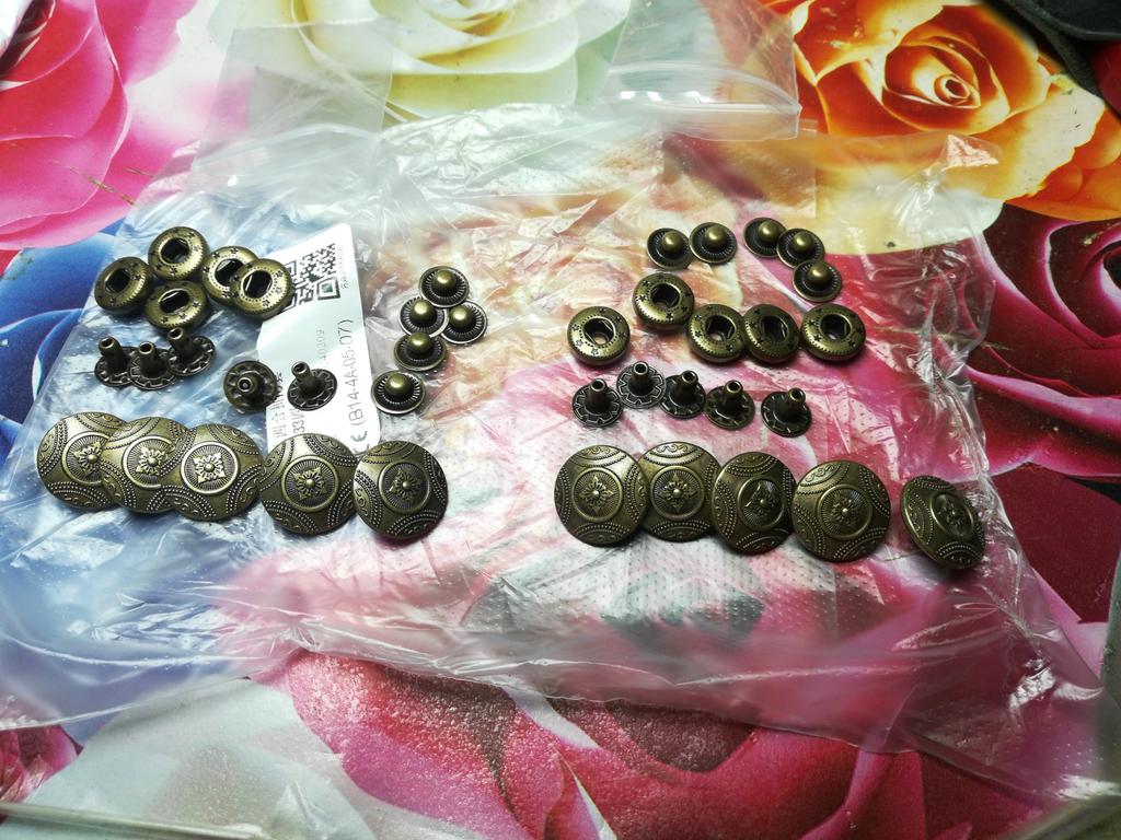 Buttons consist of 4 parts, I did not count them. Love at first sight in the ornament! Small ones for a shirt, what you need!