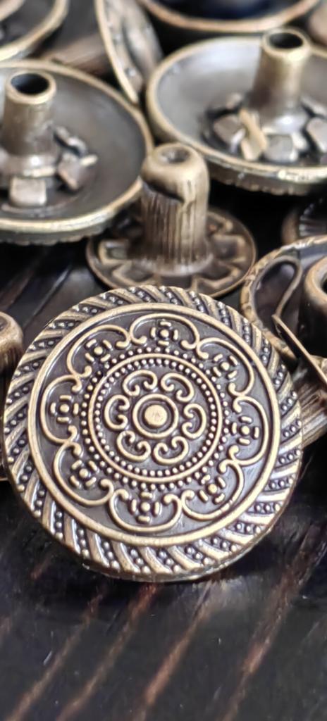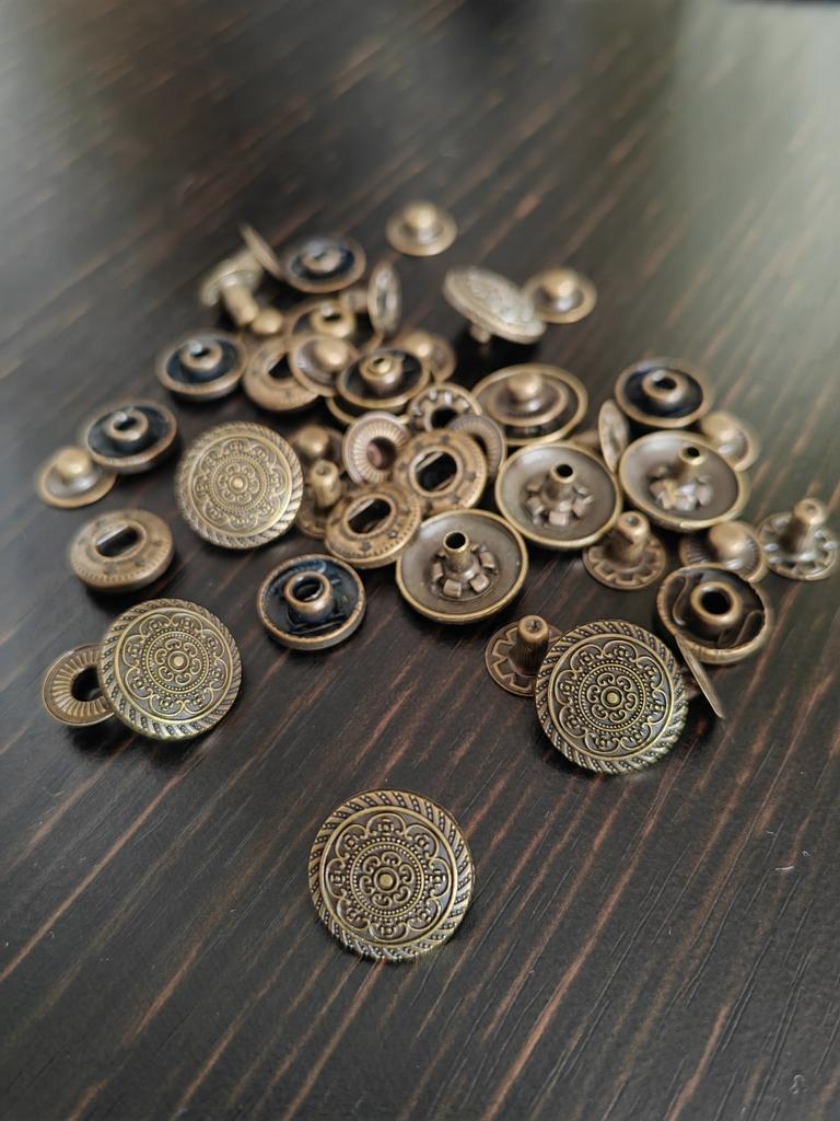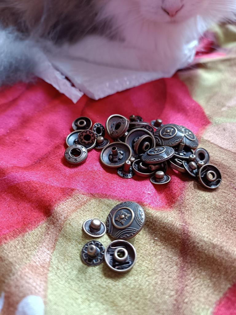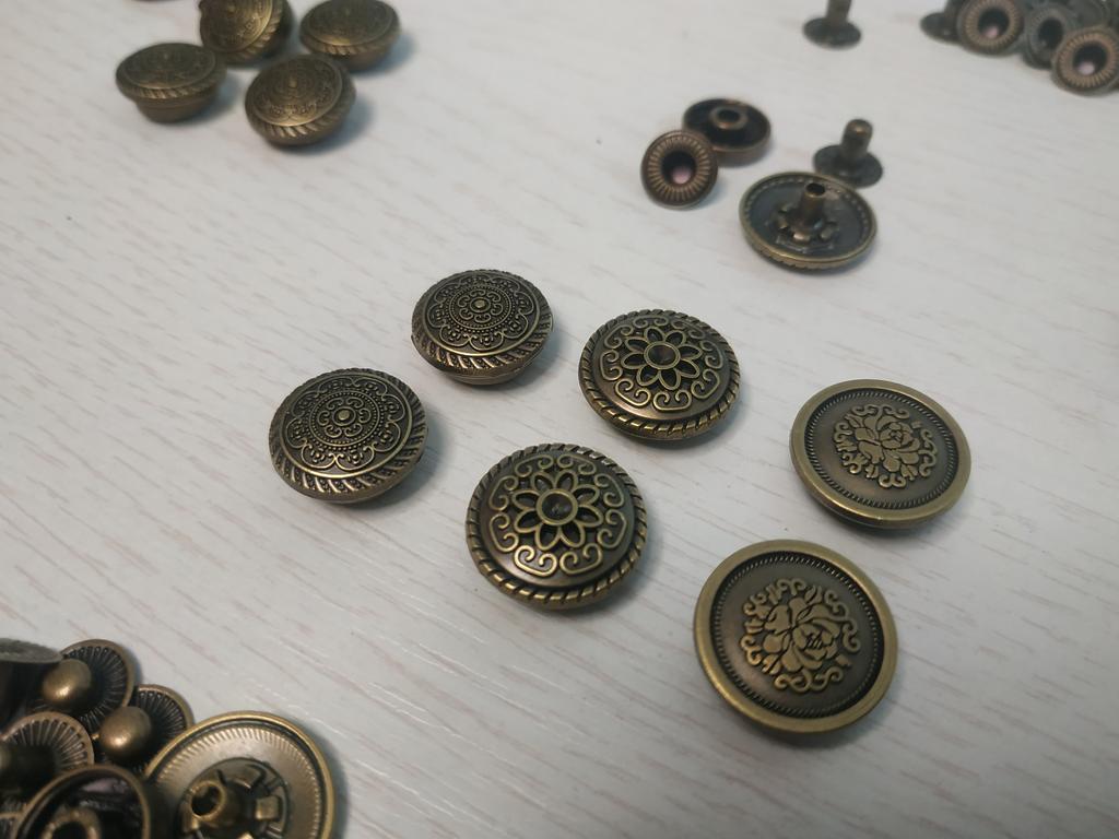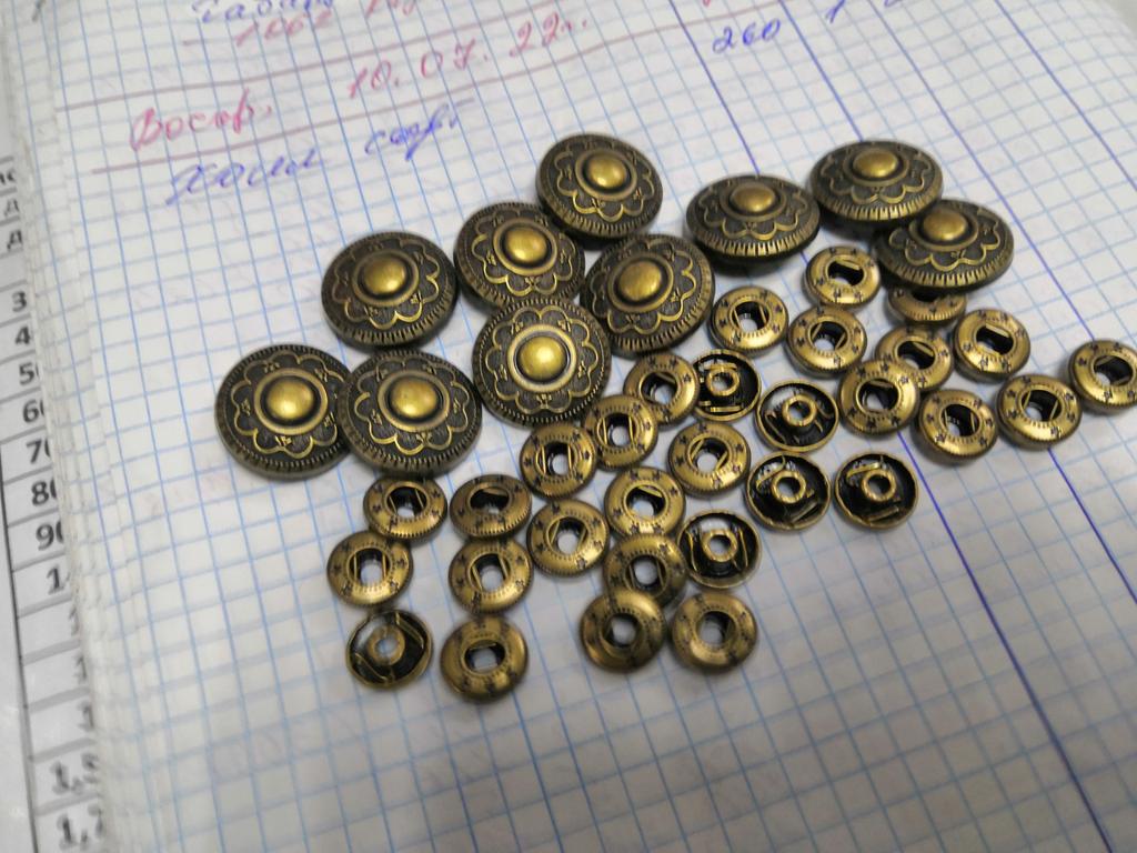 Buttons consist of 4 parts, I did not count them. Love at first sight in the ornament! Small ones for a shirt, what you need!