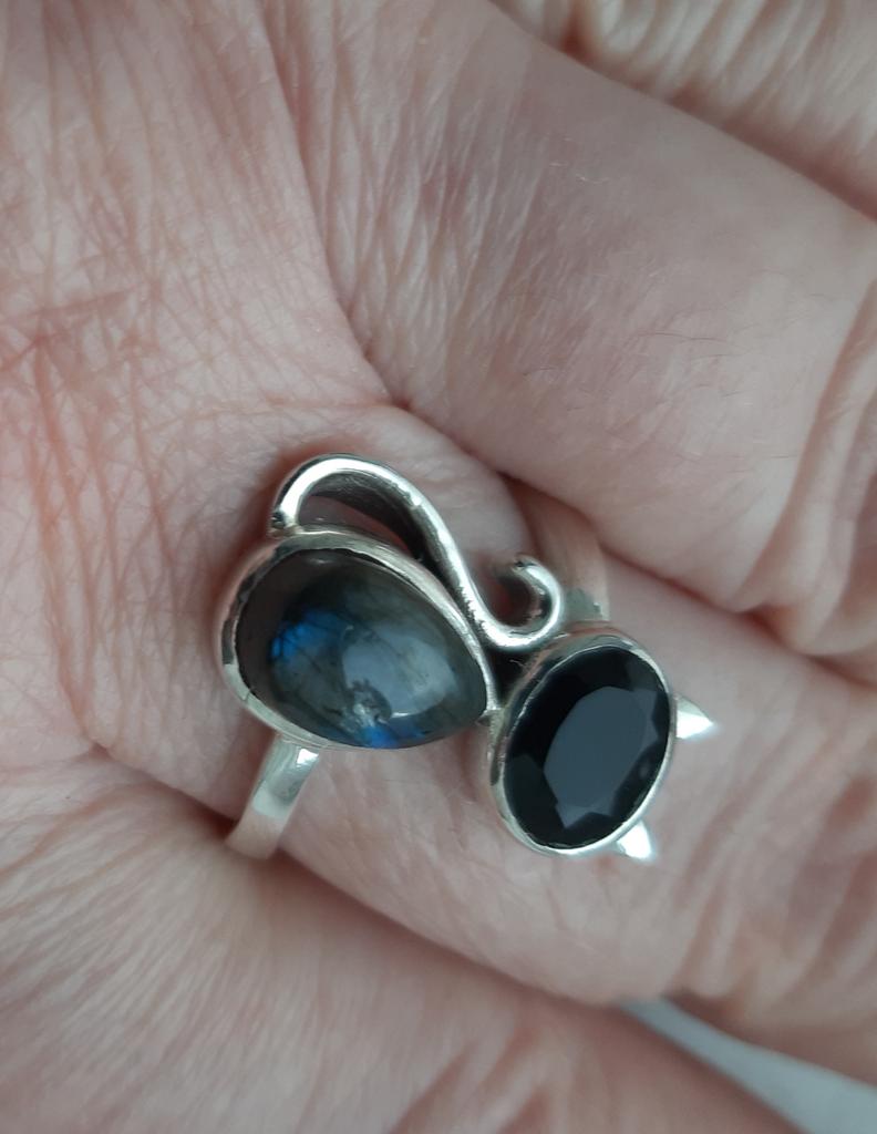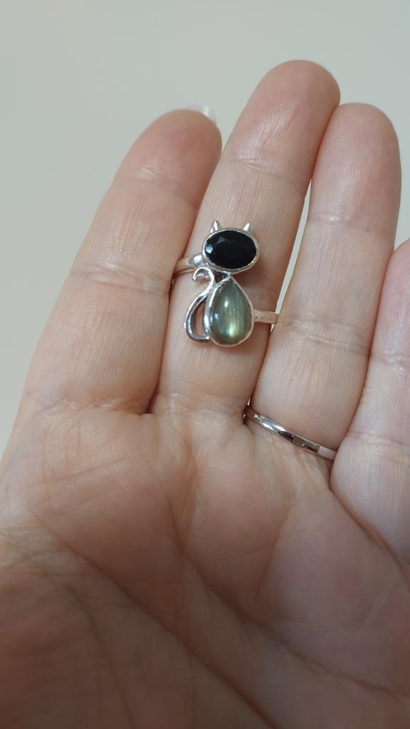 Cat Ring, Black Onyx Ring, 925 Sterling Silver Handmade Jewelry, Silver Ring Animal Jewelry