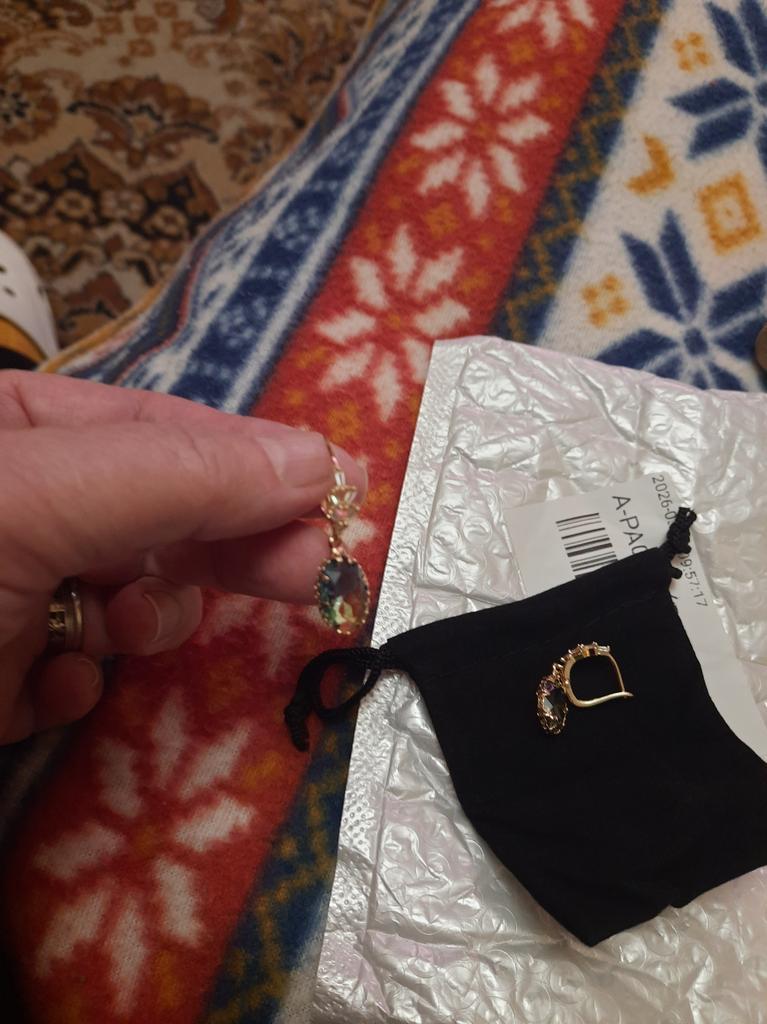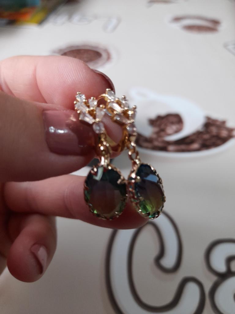 The earrings are great. Nicely made, interesting design. Elegant and gentle. One lock is difficult to open. They came in a black box I recommend the seller. I am supplementing. They look mysterious and unique!