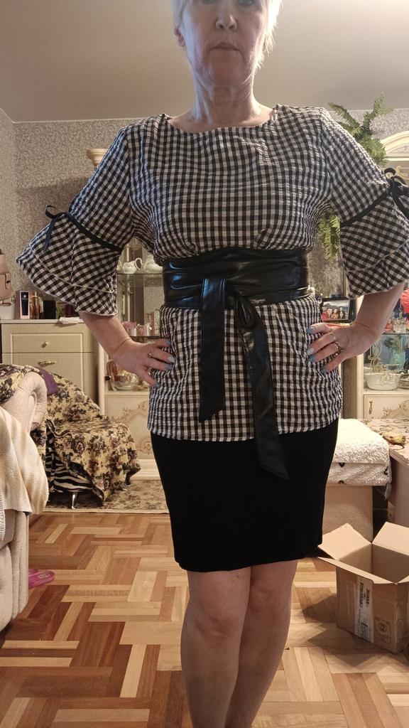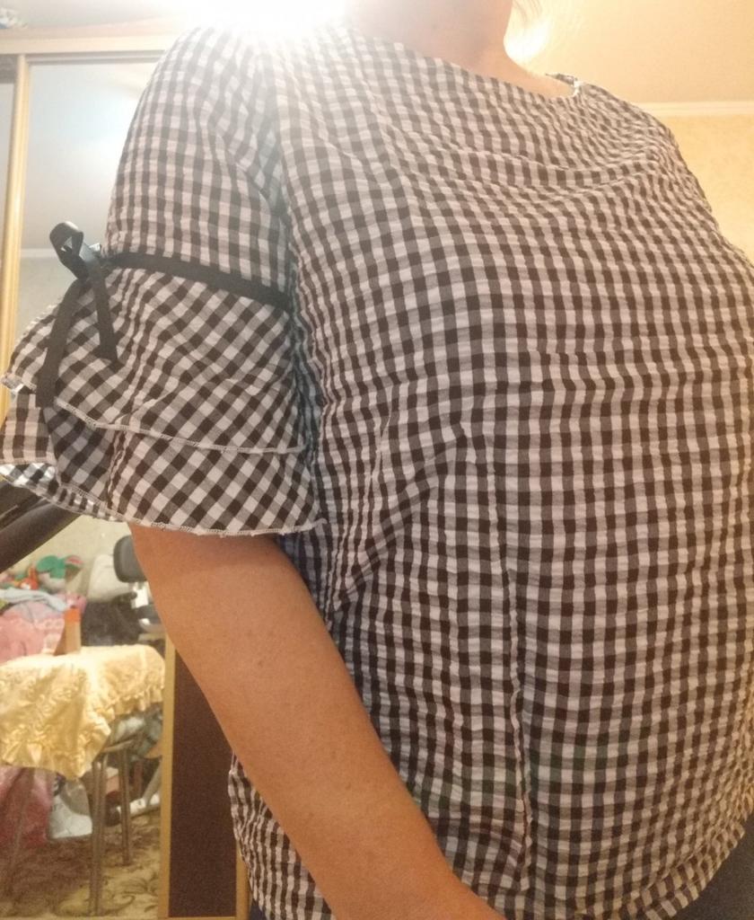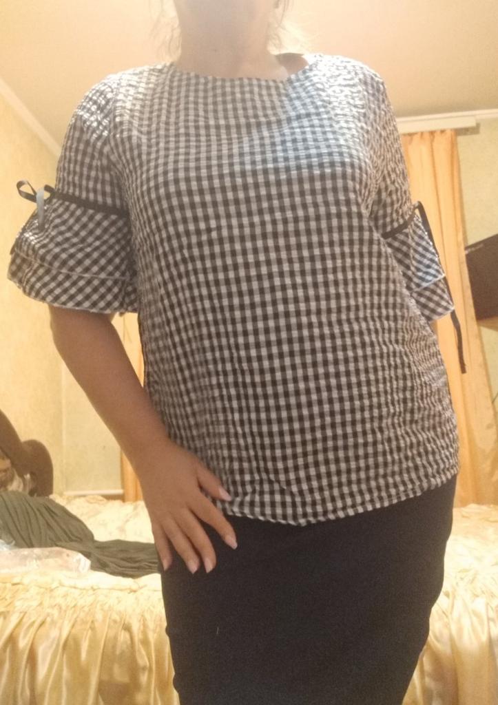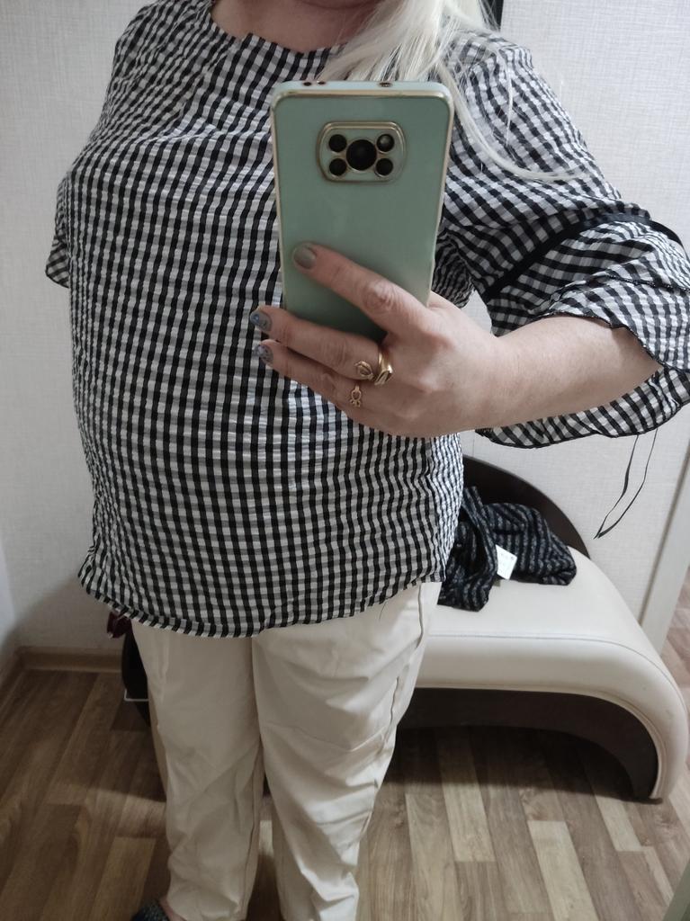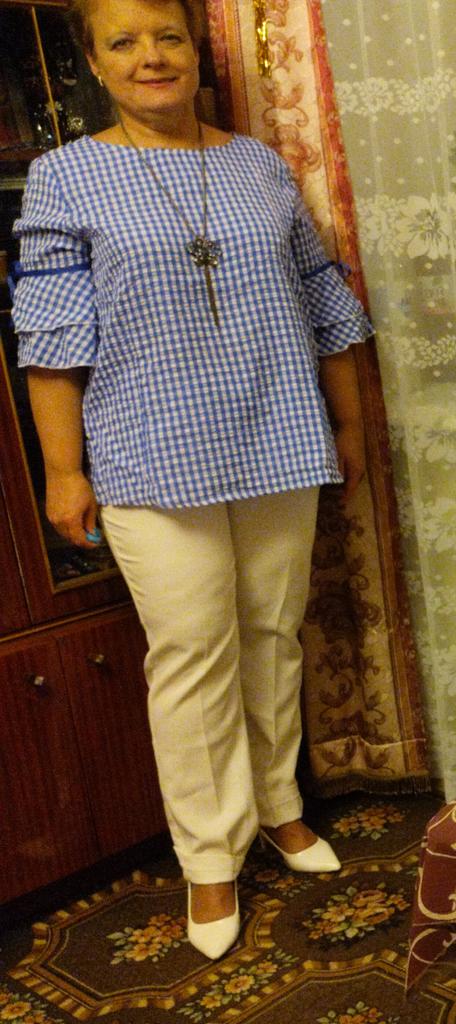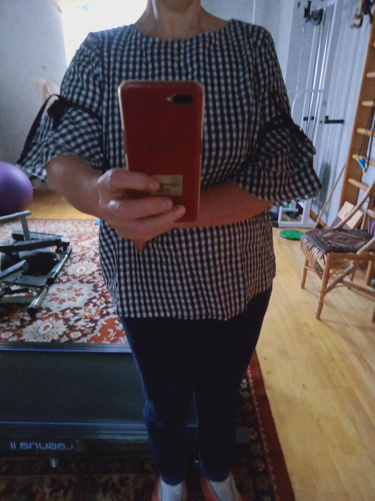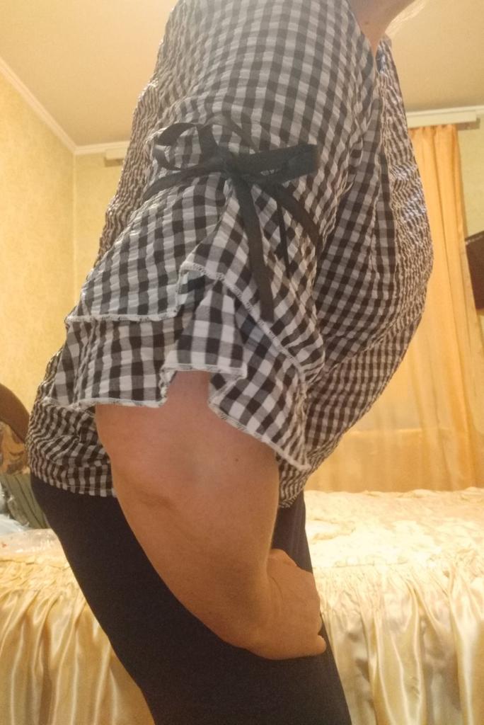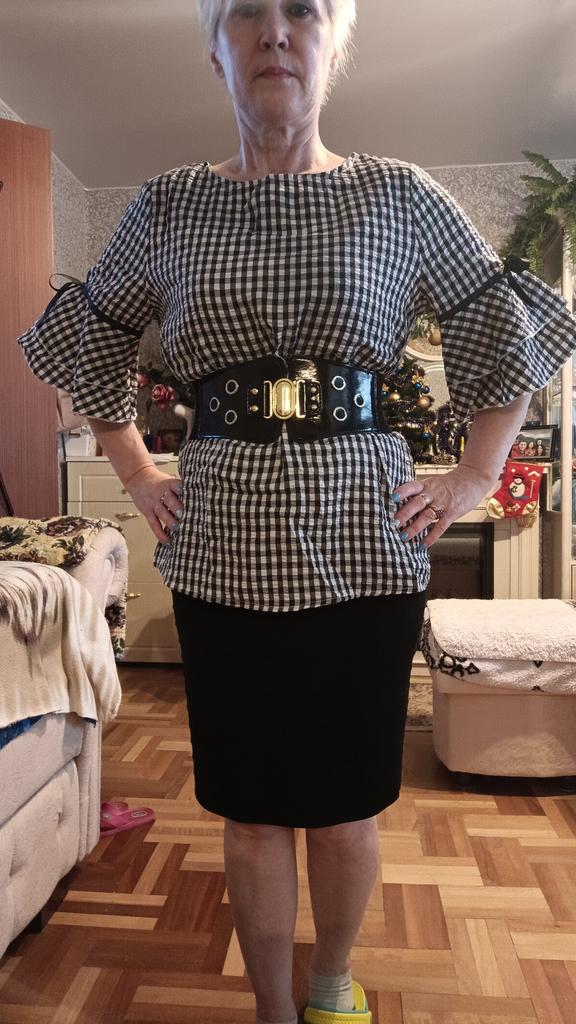 The blouse is normal, the only drawback is the lack of bust darts, the blouse constantly slides back, and I have to pull it down frequently. Otherwise, the material is light, it doesn't need ironing after washing, and it doesn't wrinkle.