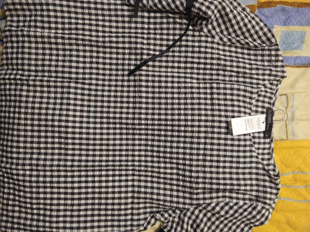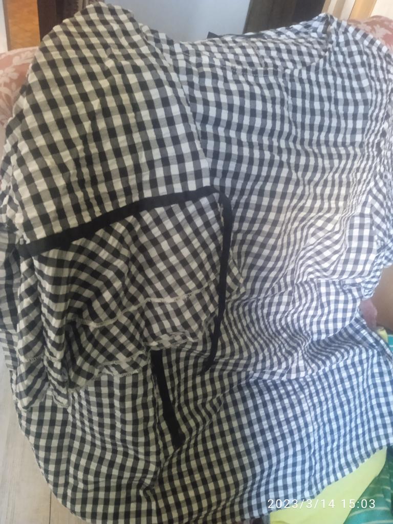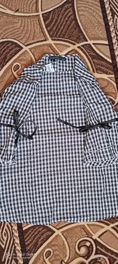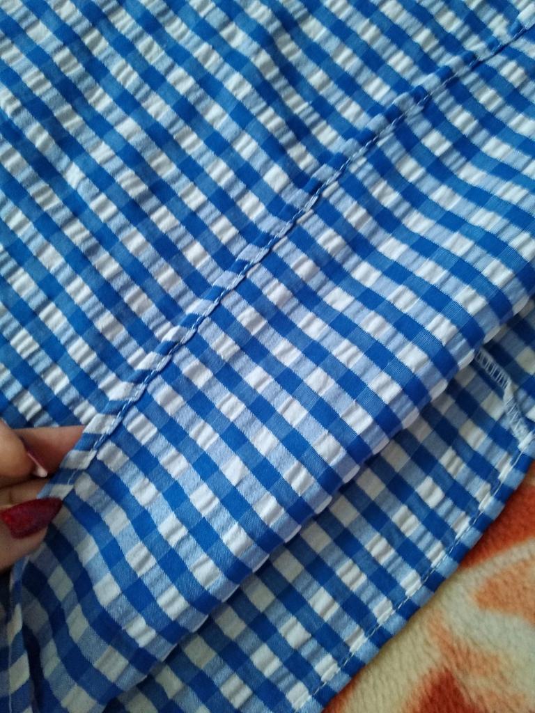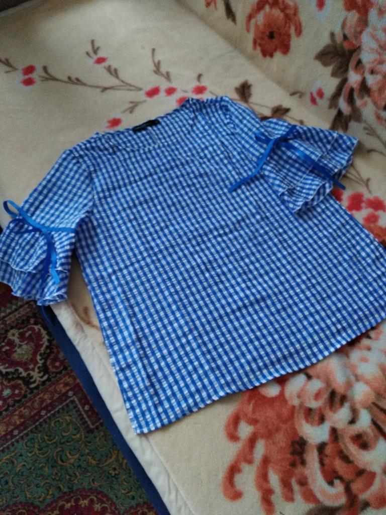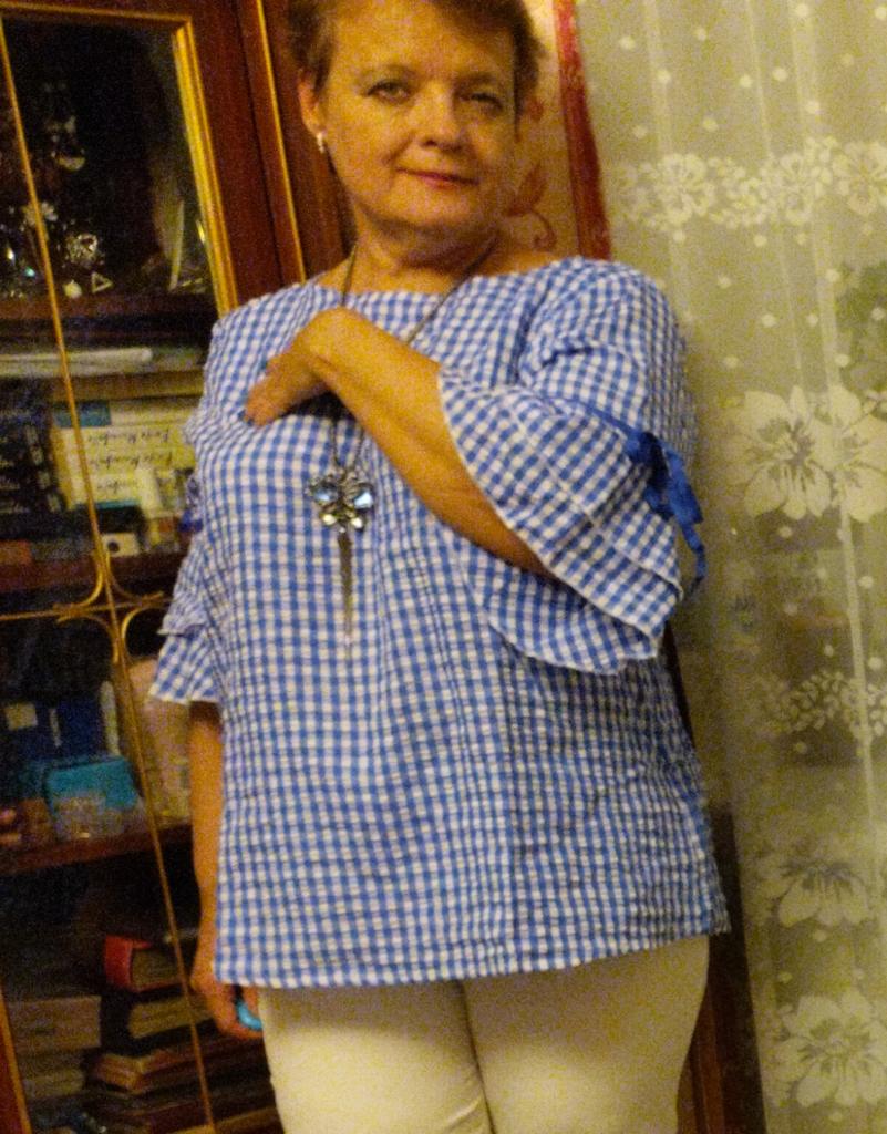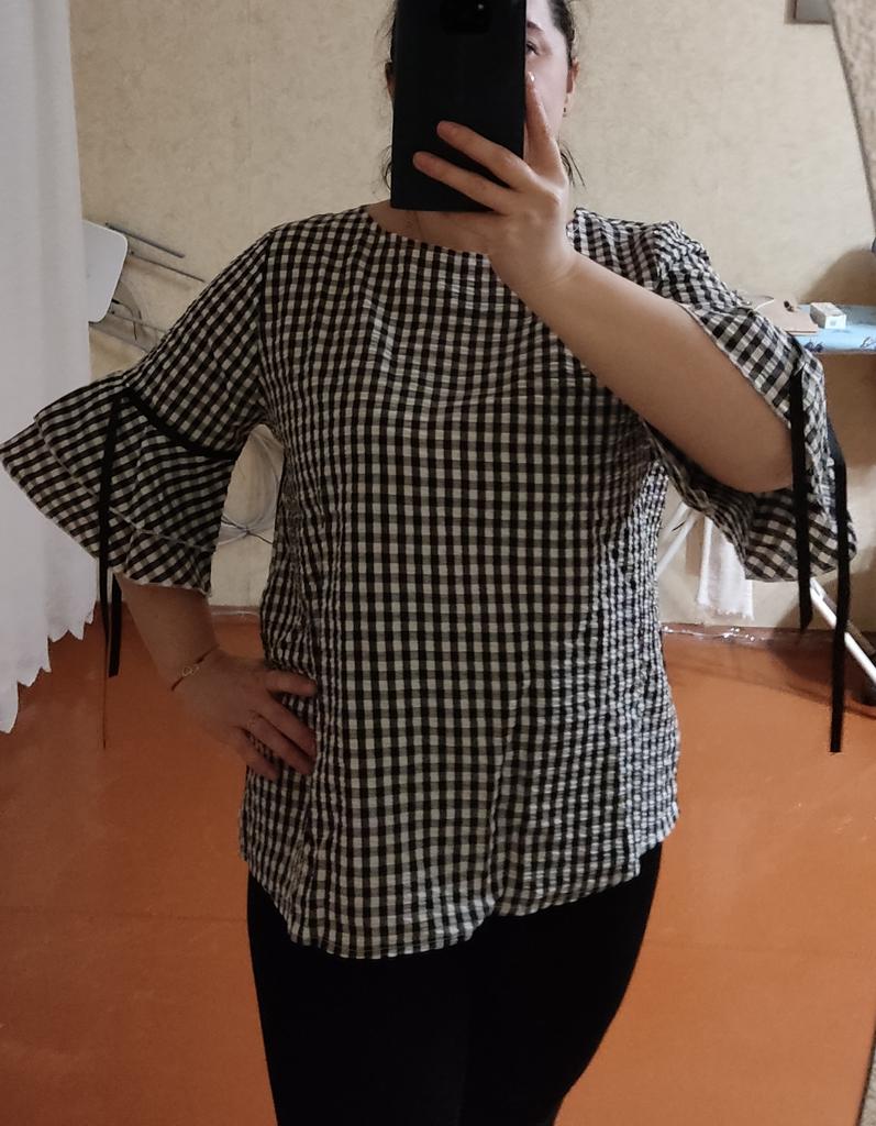 The blouse is normal, the only drawback is the lack of bust darts, the blouse constantly slides back, and I have to pull it down frequently. Otherwise, the material is light, it doesn't need ironing after washing, and it doesn't wrinkle.